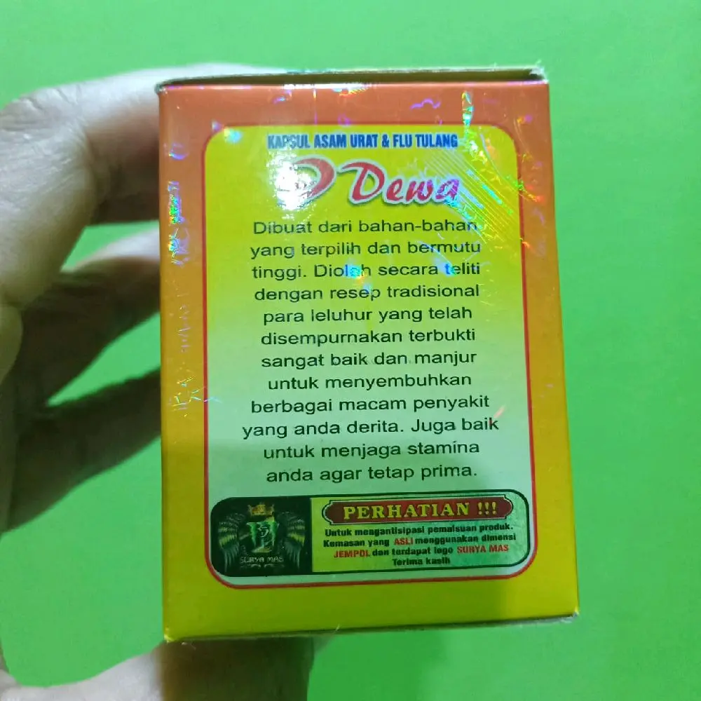 * Kemasan Kotak Obat: Kapsul 9 Dewa hadir dalam kemasan kotak obat yang praktis. 📦