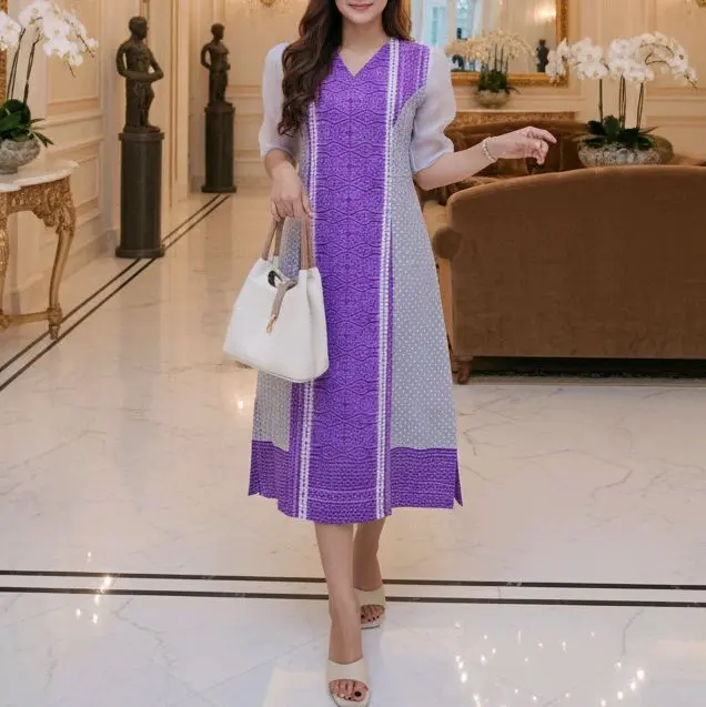 * Gaun lapis puring katun