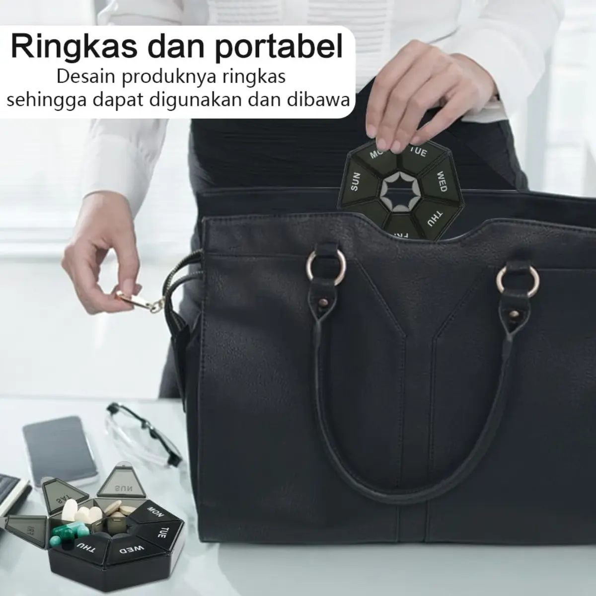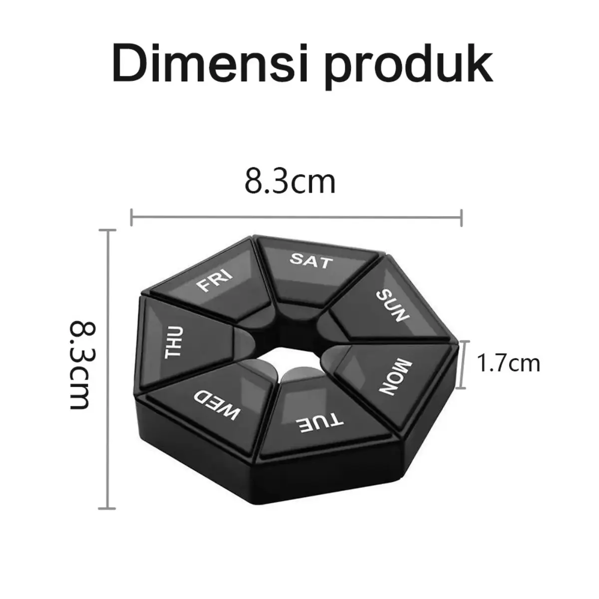 Tujuh ruang terpisah yang mencegah pencampuran obat Memudahkan pengelompokan obat berdasarkan jenis atau waktu konsumsi Menjaga kesegaran dan kualitas obat dengan mencegah campuran bau