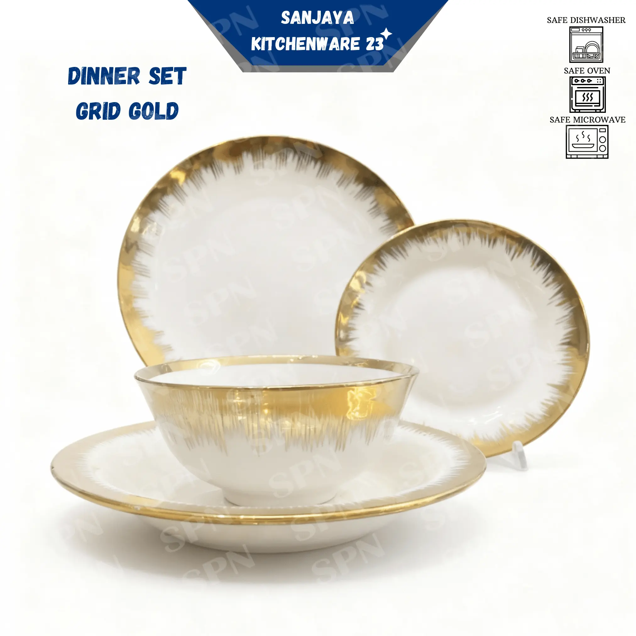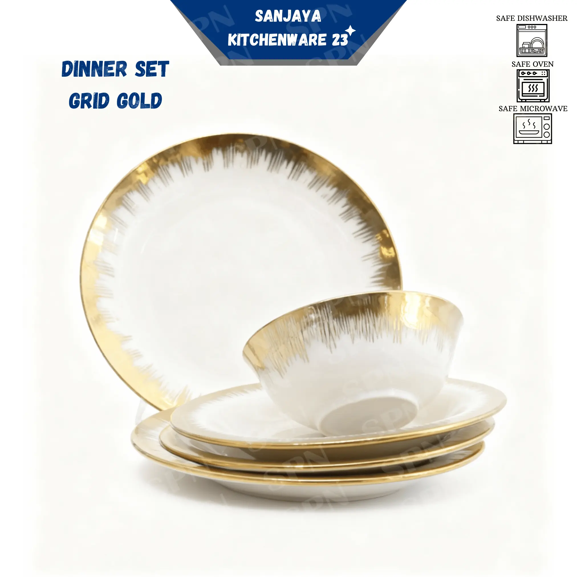 Dinner Set Keramik Porselen Design Grid Gold Collection | Sanjaya Kitchenware 23