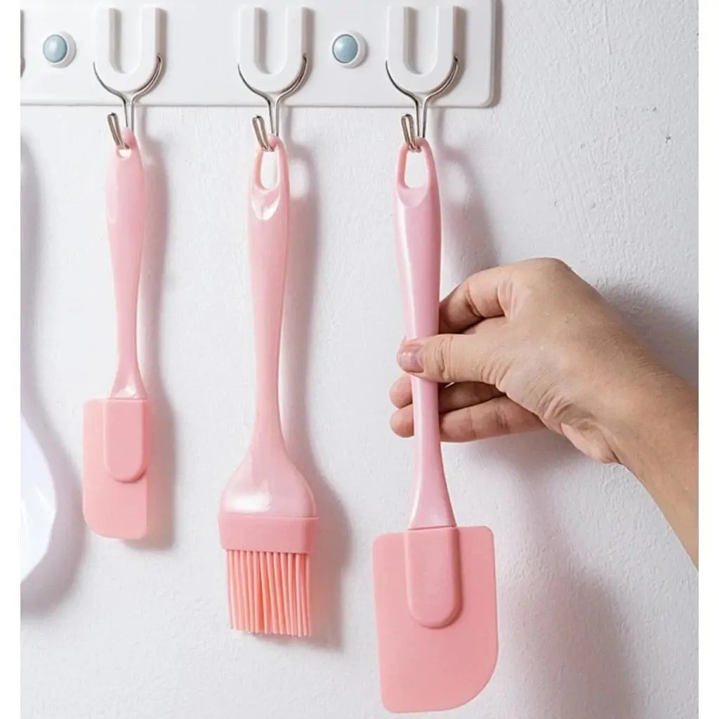 Set alat memanggang memiliki lubang gantung agar mudah disimpan, yang bisa digunakan untuk mengaduk adonan, mentega, menghias roti, kue.