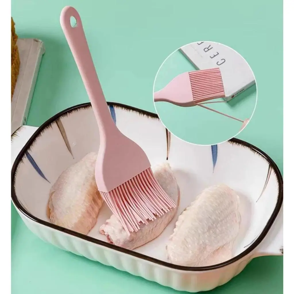 Pinggiran sisi berbentuk bulat dari set sikat minyak spatula krim tidak merusak panci dan peralatan dapur.