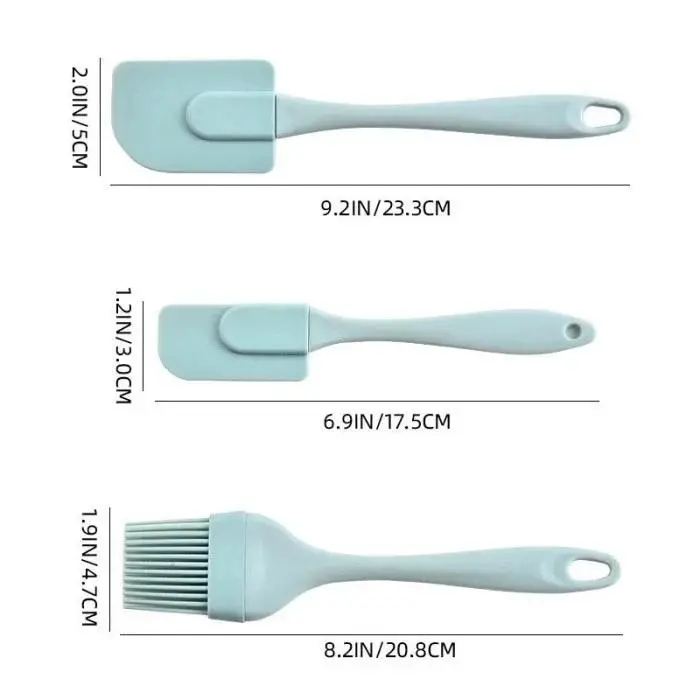 Set spatula silikon dapat digunakan untuk mengaduk adonan, krim, kue, dan lainnya. Spatula krim aman dan ramah lingkungan, dan dapat digunakan dengan mudah