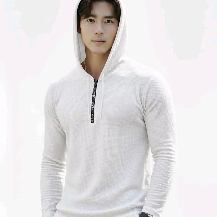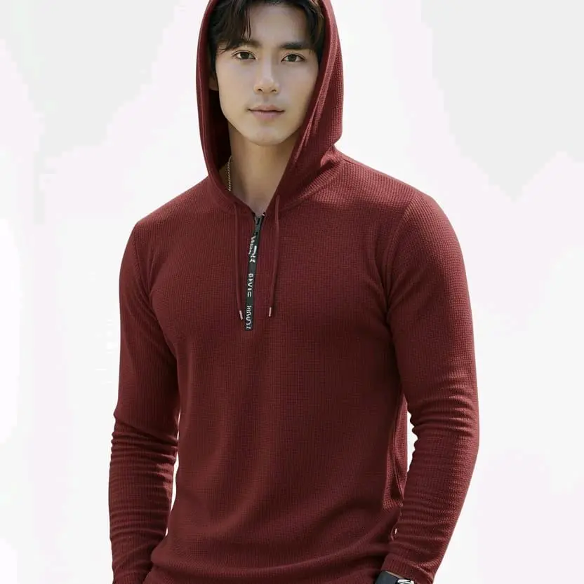 kaos pria lengan panjang Hoodie Ziper wafle polos 2- hanley lengan panjang kancing aktif - kaos distro Polos Baju Formal
