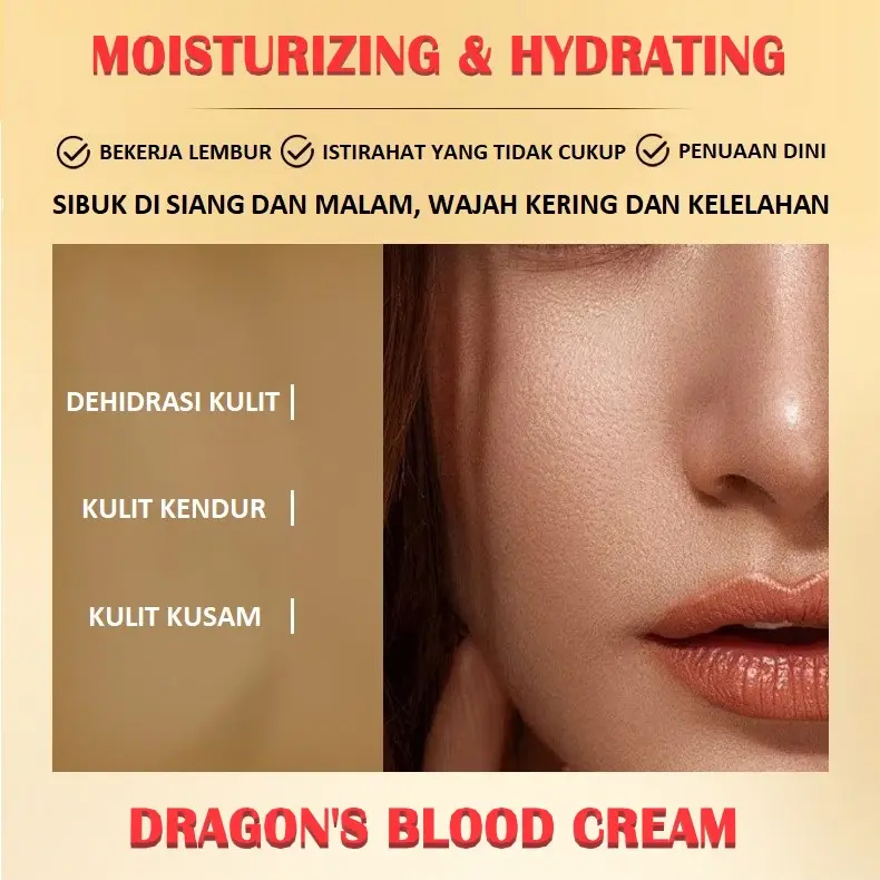 ·Bahan Dragon's Blood: Krim ini menggunakan bahan Dragon's Blood yang dikenal memiliki sifat menghidrasi dan melembapkan kulit. 💧