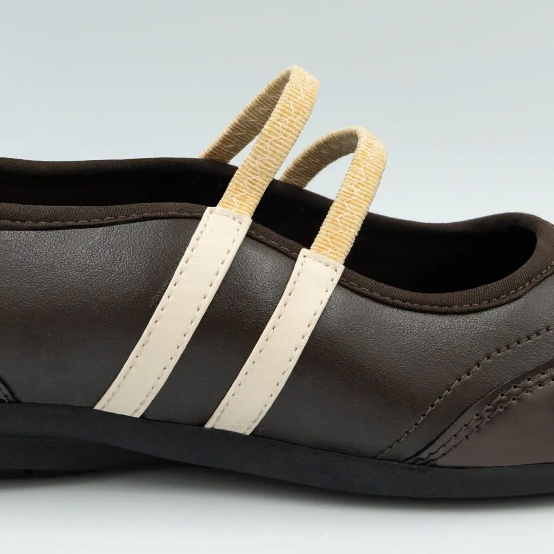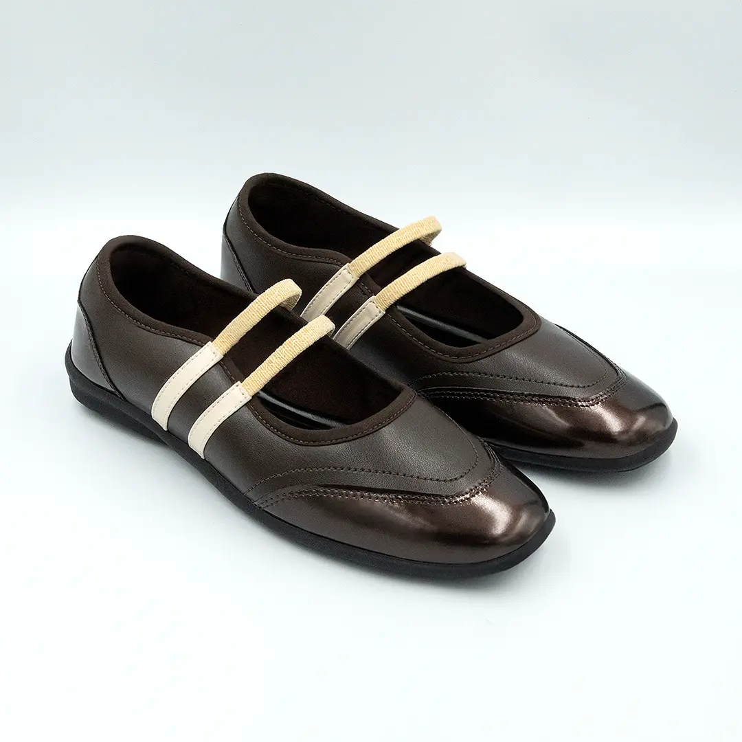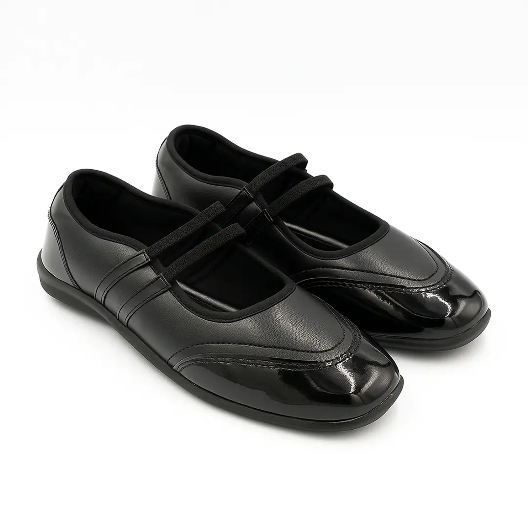 Sepatu wanita ini memadukan desain feminim ala ballerina dengan sentuhan kasual modern yang cocok untuk berbagai aktivitas, dari gaya santai hingga semi-formal.