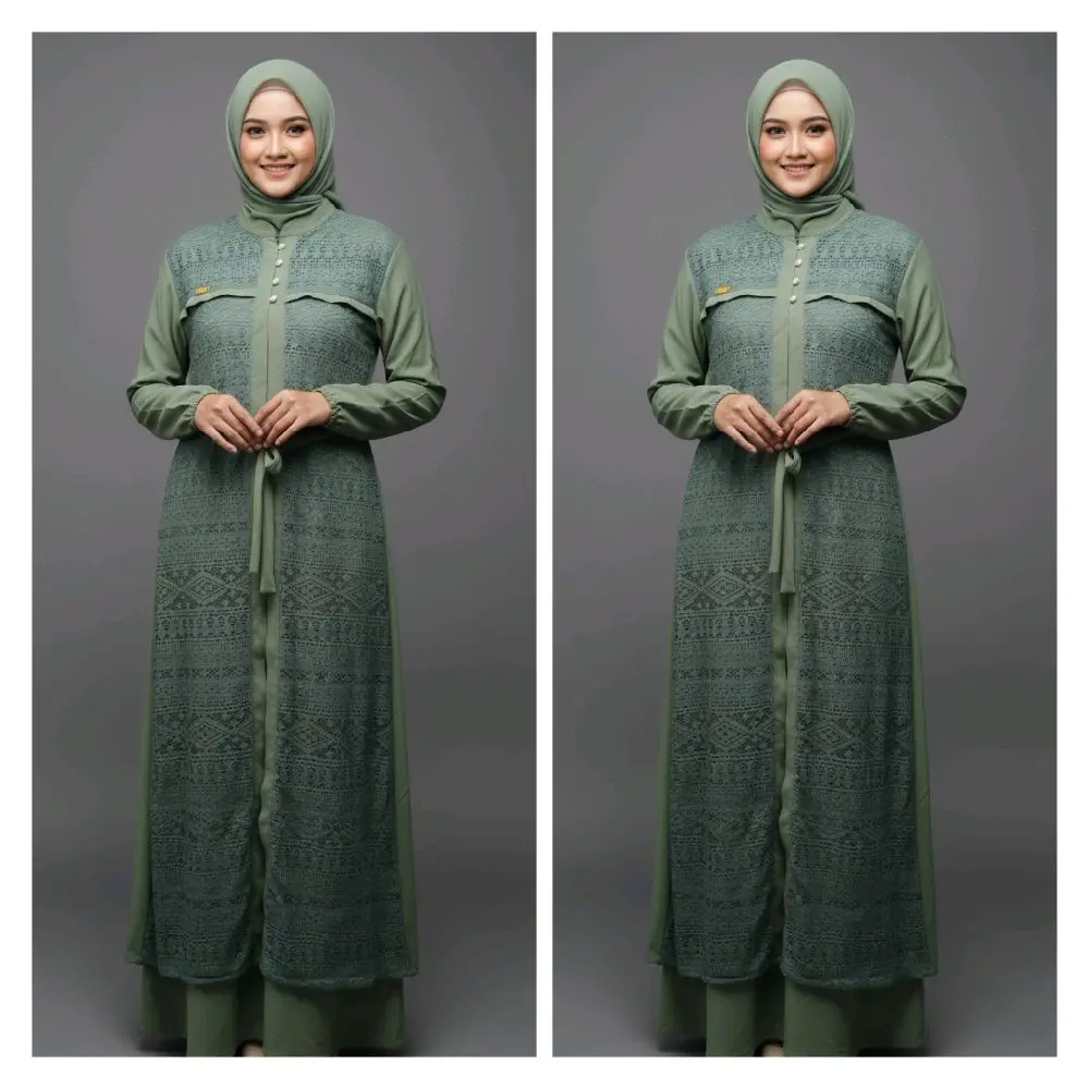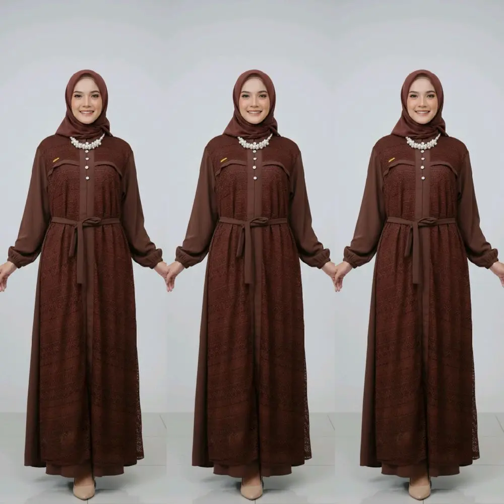 * Mix Brokat: Desain mix brokat menambah kesan mewah dan modern pada gamis ini. Cocok untuk acara pesta.ย