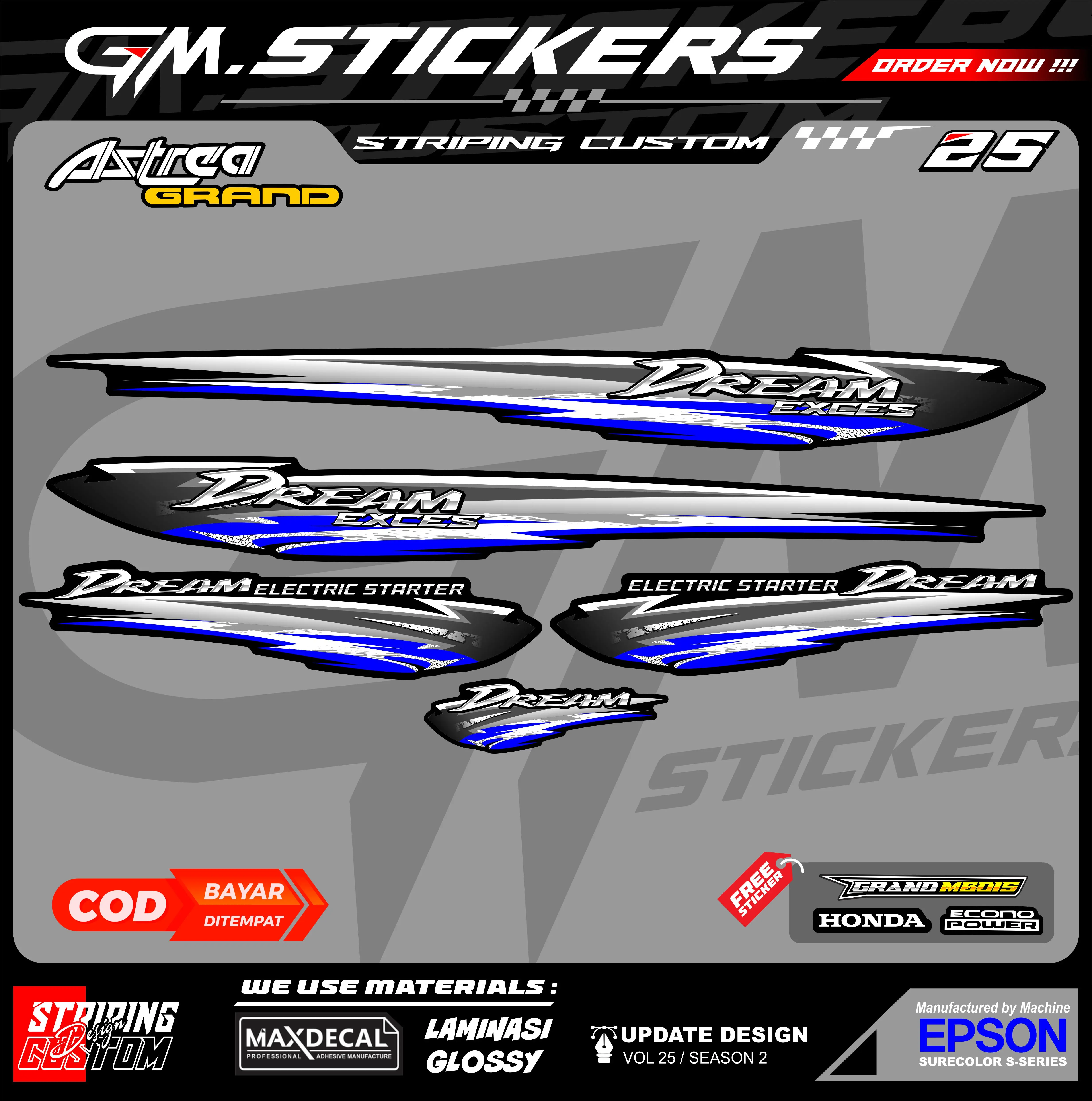 STRIPING STIKER VARIASI HONDA ASTREA GRAND BULUS SABIT IMPRESSA LEGENDA DREAM MOTIF STD RACING K143