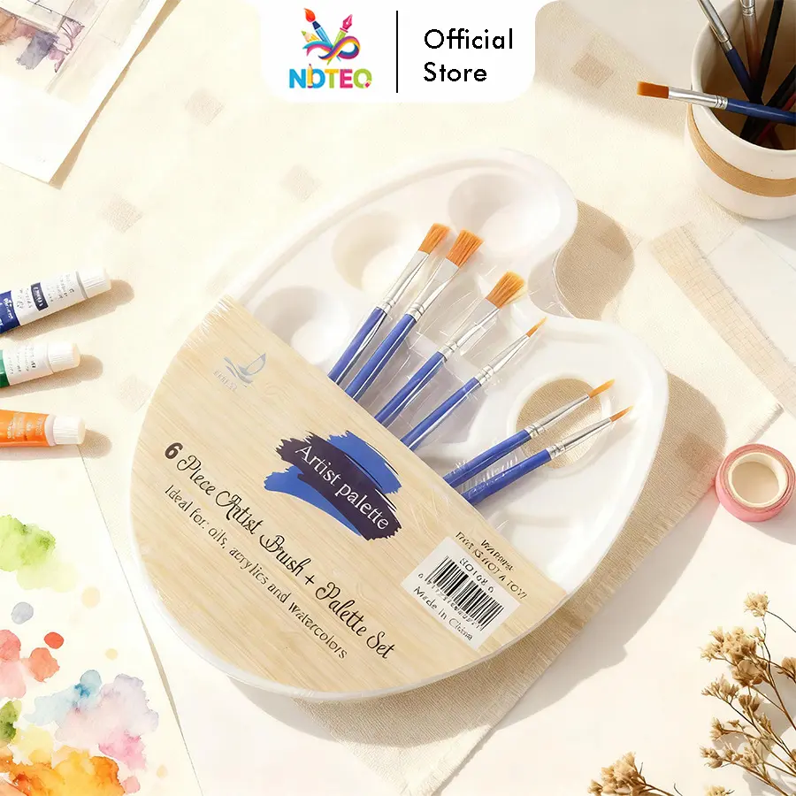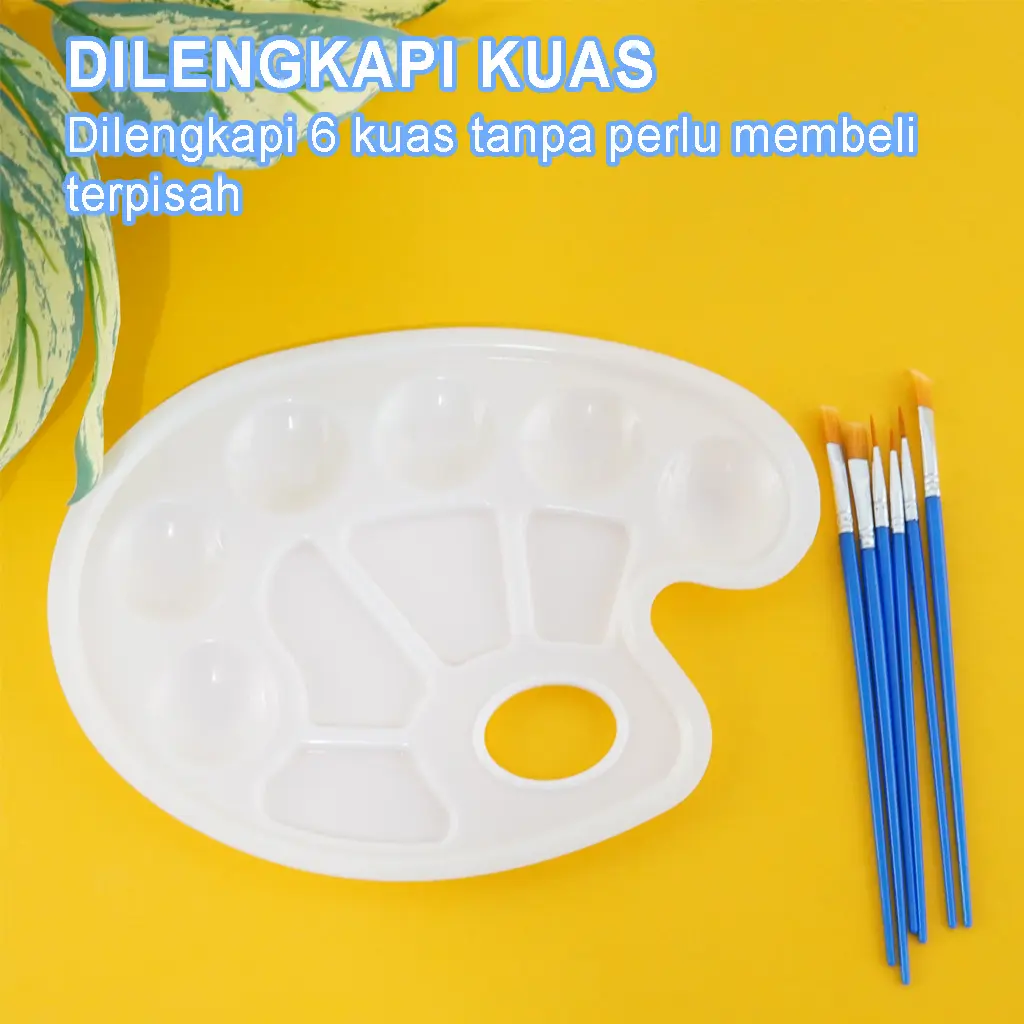 Kuas + Palette Set Kuas Melukis Lengkap dan Palet Plastik 6 Lubang Kuas Premium YL-030901