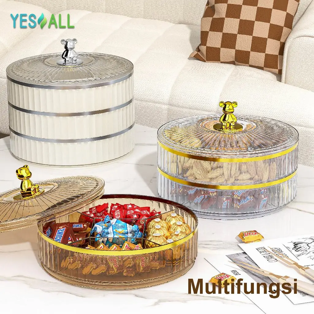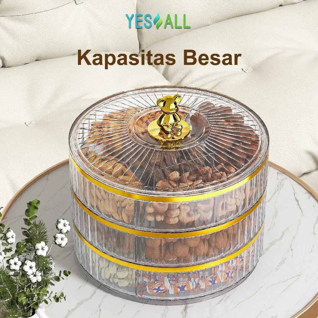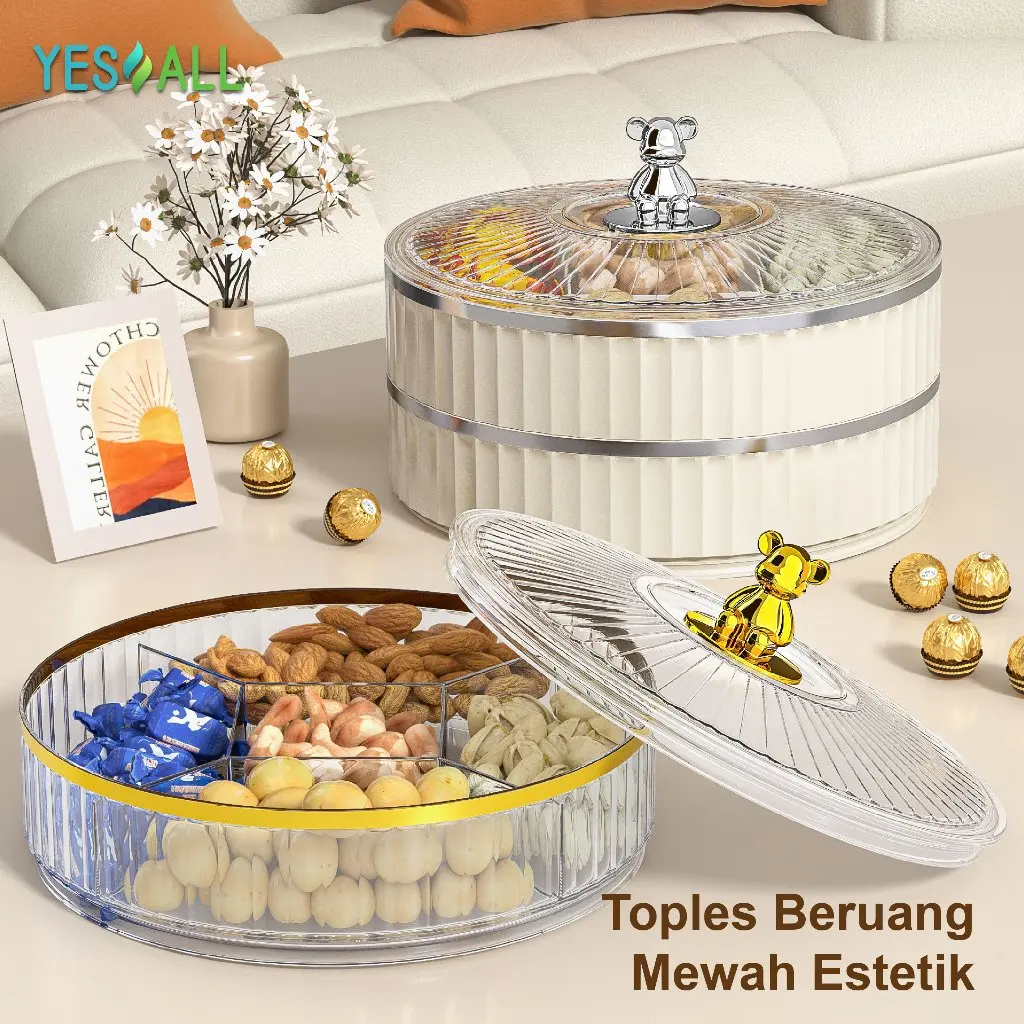 3. Bentuk Bulat yang Dapat Diputar: Toples ini dilengkapi dengan desain putar yang memungkinkan Anda untuk mengakses isinya dengan mudah dan menyenangkan, serta memberikan kesan interaktif yang unik.