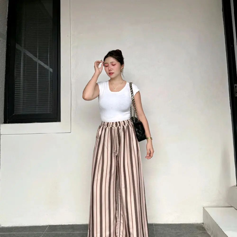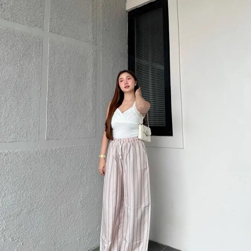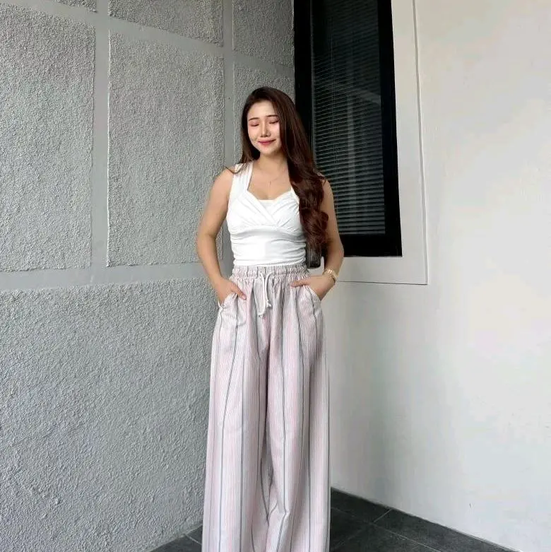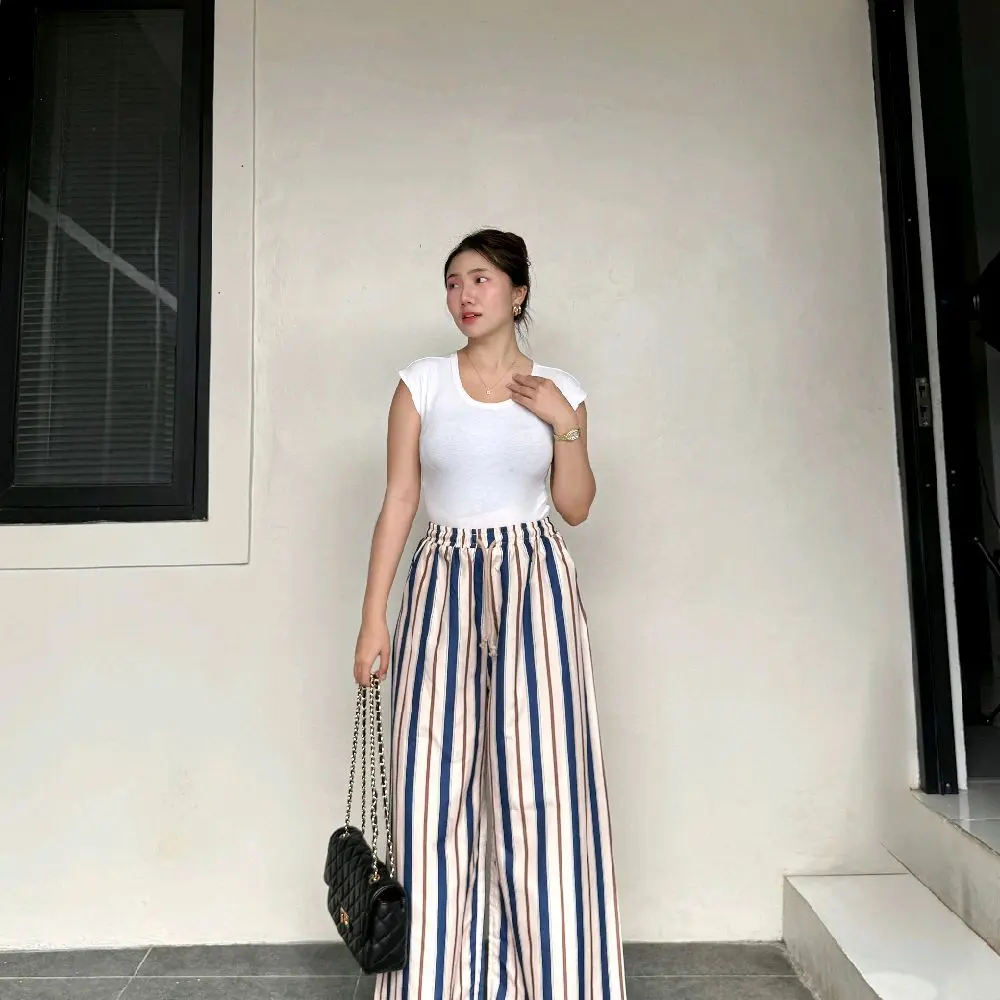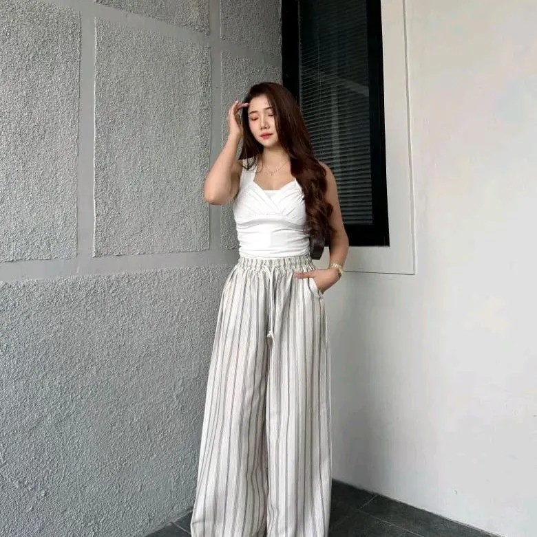 Celanakudot - Everyday Pants adalah celana panjang wanita yang cocok untuk kantor dan kuliah. Desain baggy memberikan kenyamanan maksimal. Motif garis pinstripe menambah tampilan formal dan casual. Cocok untuk wanita yang mencari celana loose basic.