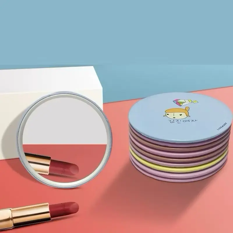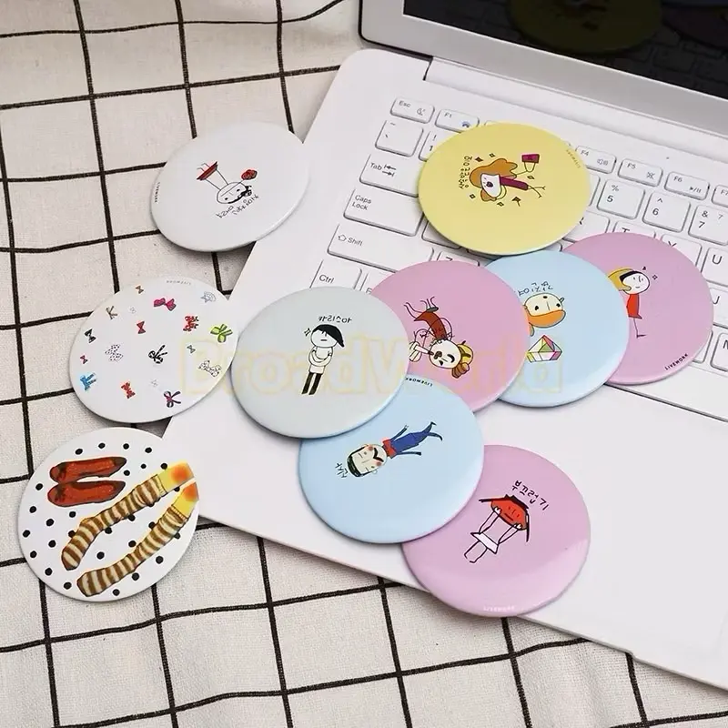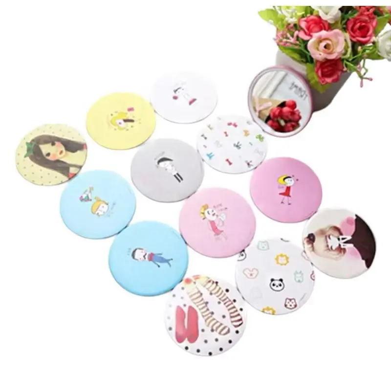 CERMIN KACA BULAT KARAKTER CUTE / CERMIN SOUVERNIR PORTABLE MINI TRAVELLING MAKE UP