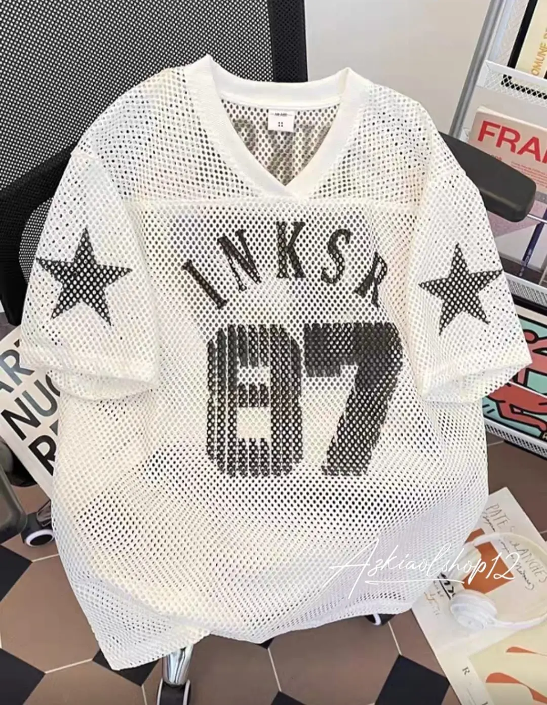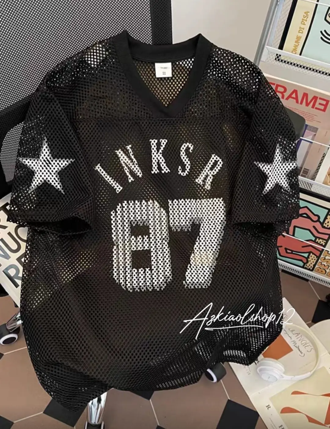 ✨ Kaos Jersey BLACK 68 hadir dengan desain mesh yang menambah tampilan gaya. Dilengkapi dengan nomor 37, kaos ini memberikan sentuhan retro yang cocok untuk Anda. Cocok untuk tampilan oversize dan boxy yang stylish. 🌟