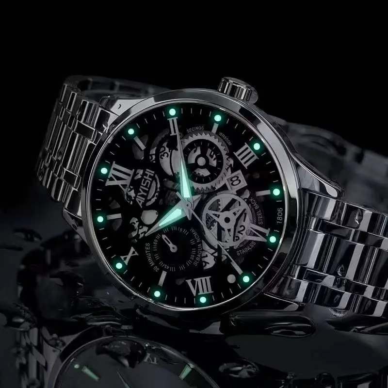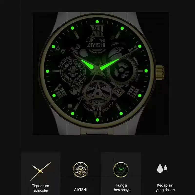 Jam Tangan Otomatis Pria AIYISHI 1623 - Baja Tahan Karat, Tahan Air 100 meter, Bercahaya, Garansi Resmi Asli + Kotak Gratis