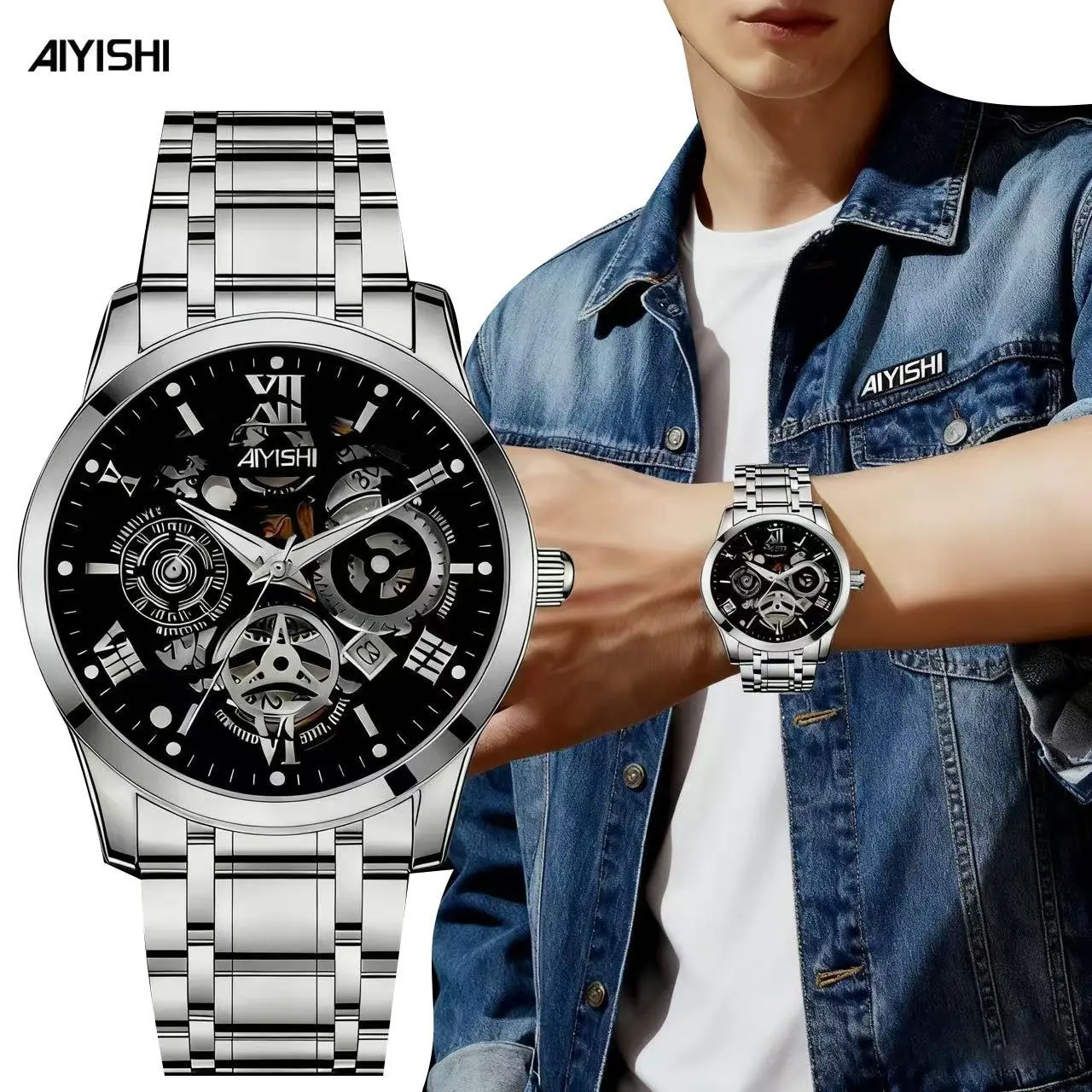 Jam Tangan Otomatis Pria AIYISHI 1623 - Baja Tahan Karat, Tahan Air 100 meter, Bercahaya, Garansi Resmi Asli + Kotak Gratis