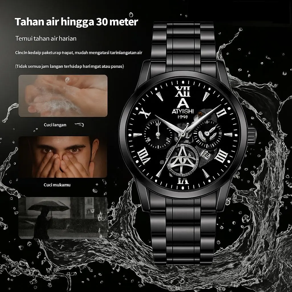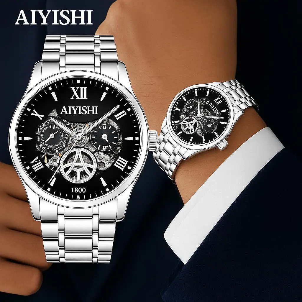 Jam Tangan Otomatis Pria AIYISHI 1623 - Baja Tahan Karat, Tahan Air 100 meter, Bercahaya, Garansi Resmi Asli + Kotak Gratis