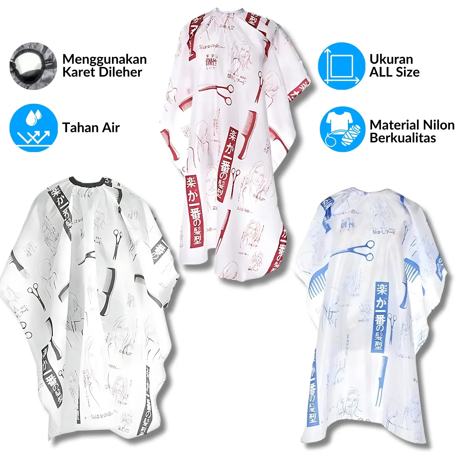 Sebagai pelindung saat potong rambut, tentu saja jubah apron ini dibekali ukuran yang panjang dan lebar. Saat Anda duduk bagian bahu, tangan, hingga kaki akan terlindungi. Tak ada lagi rasa tidak nyaman akibat potongan rambut yang mengenai kulit.