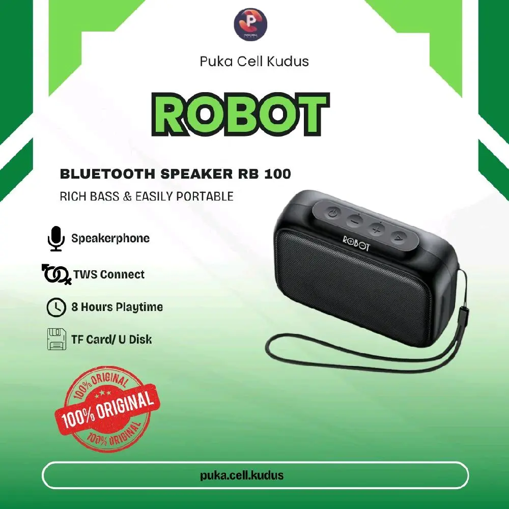 Nikmati pengalaman mendengarkan musik yang jernih dan bertenaga dengan ROBOT RB100, speaker mini yang siap menemani aktivitasmu di mana saja!