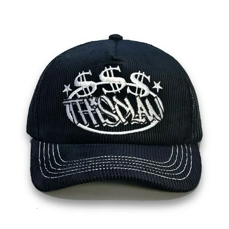 5. Topi Jaring Trucker hat Corduroy Dollar Black Thisplan original