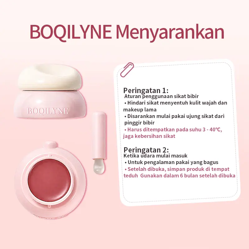 ·Lipstik & Blush dalam satu produk: BOQILYNE menawarkan lipstik dan blush dalam satu gel lip gloss. Cocok untuk digunakan di bibir dan pipi. 🌟