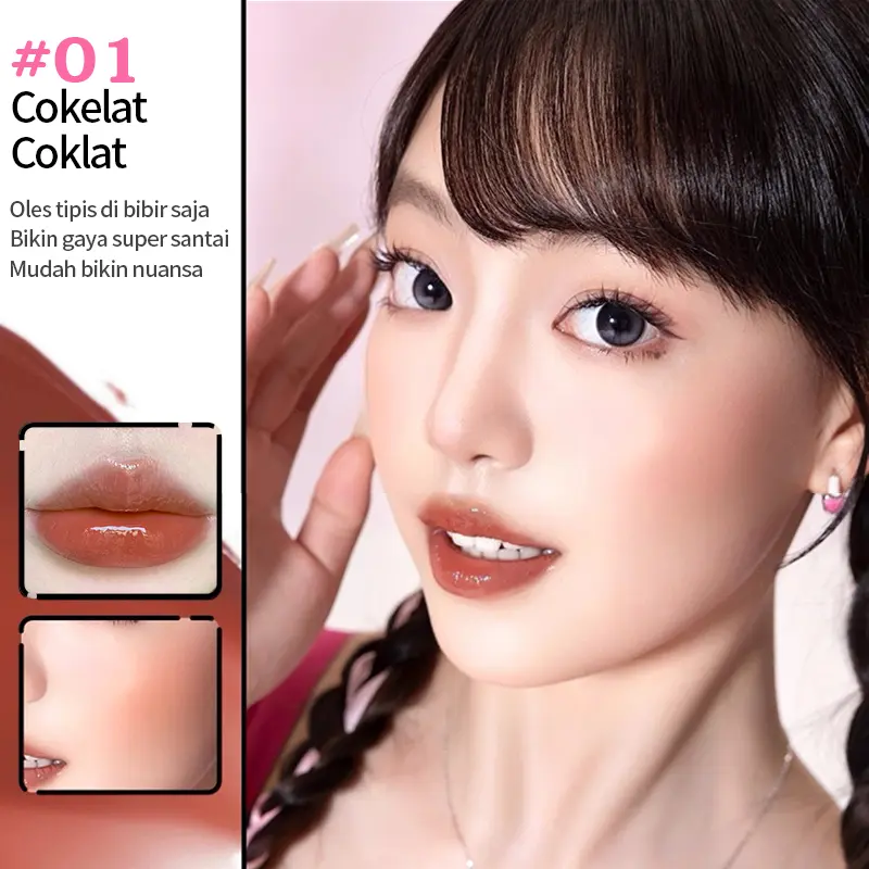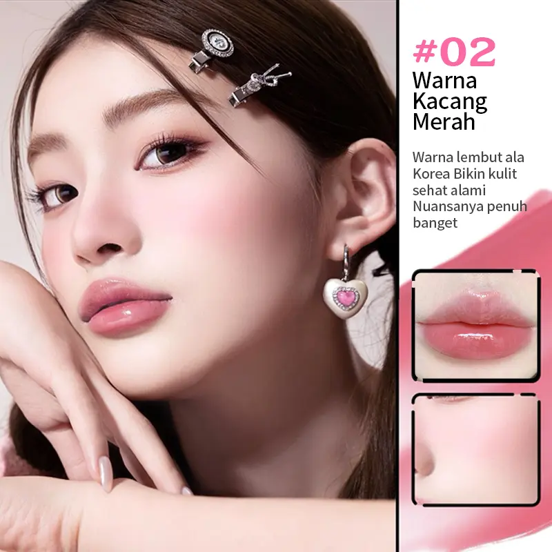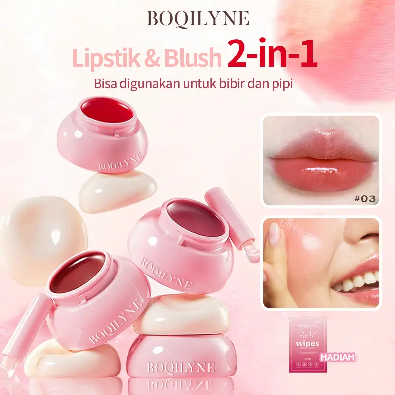 BOQILYNE 2-in-1 Lip & Cheek Gel! Sapuan Mudah, Warna Glow – Tahan Lama Anti Lengket Bibir Kosmetik Lipstik