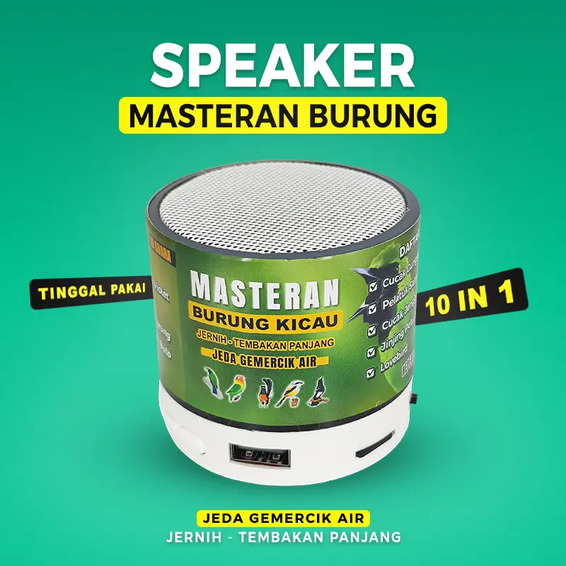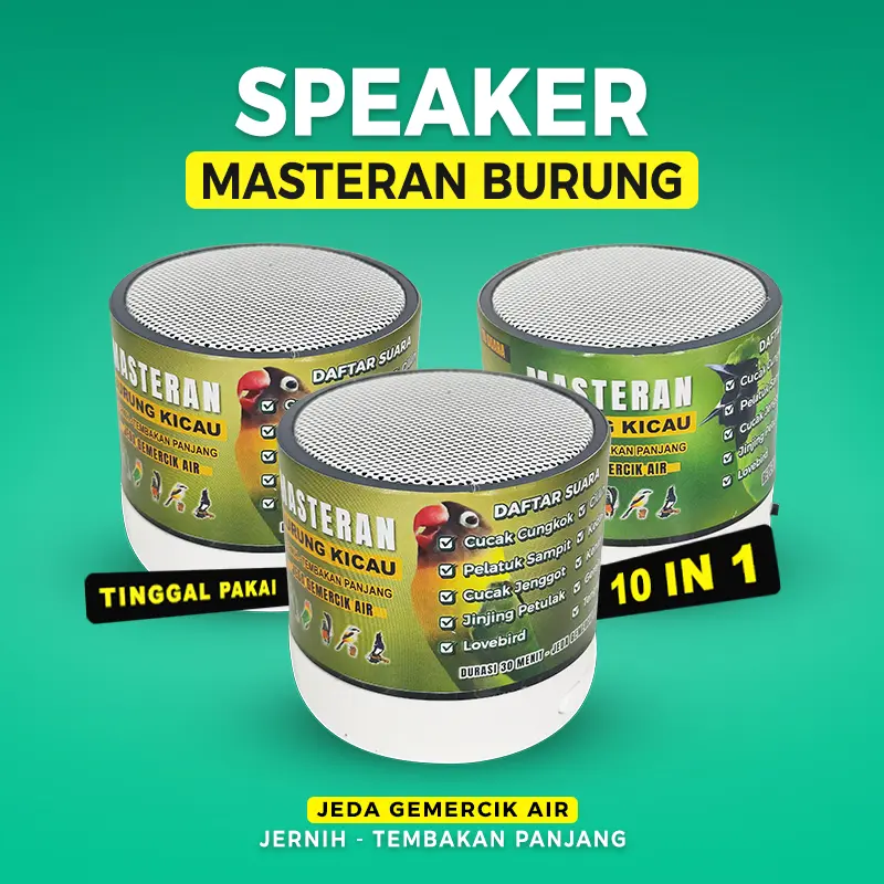 Speaker Masteran Burung Kicau Jeda gemercik air jernih & Tembakan Panjang. Dirancang khusus untuk meningkatkan kualitas suara burung. Cocok untuk pemeliharaan burung yang menginginkan suara berkualitas. Dengan speaker ini, burung Anda akan memiliki suara yang lebih menarik.