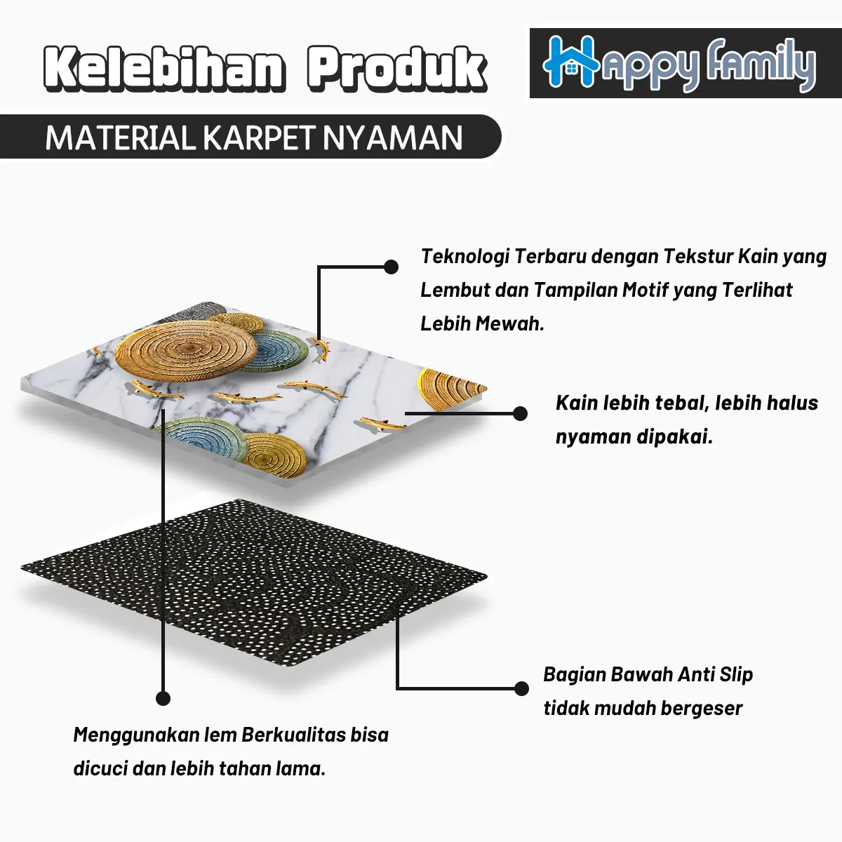 - Cocok digunakan untuk kamar tidur, ruang tamu/ruang keluarga, alas meja, kantor, dll membuat ruangan menjadi lebih berkelas๐ฅ