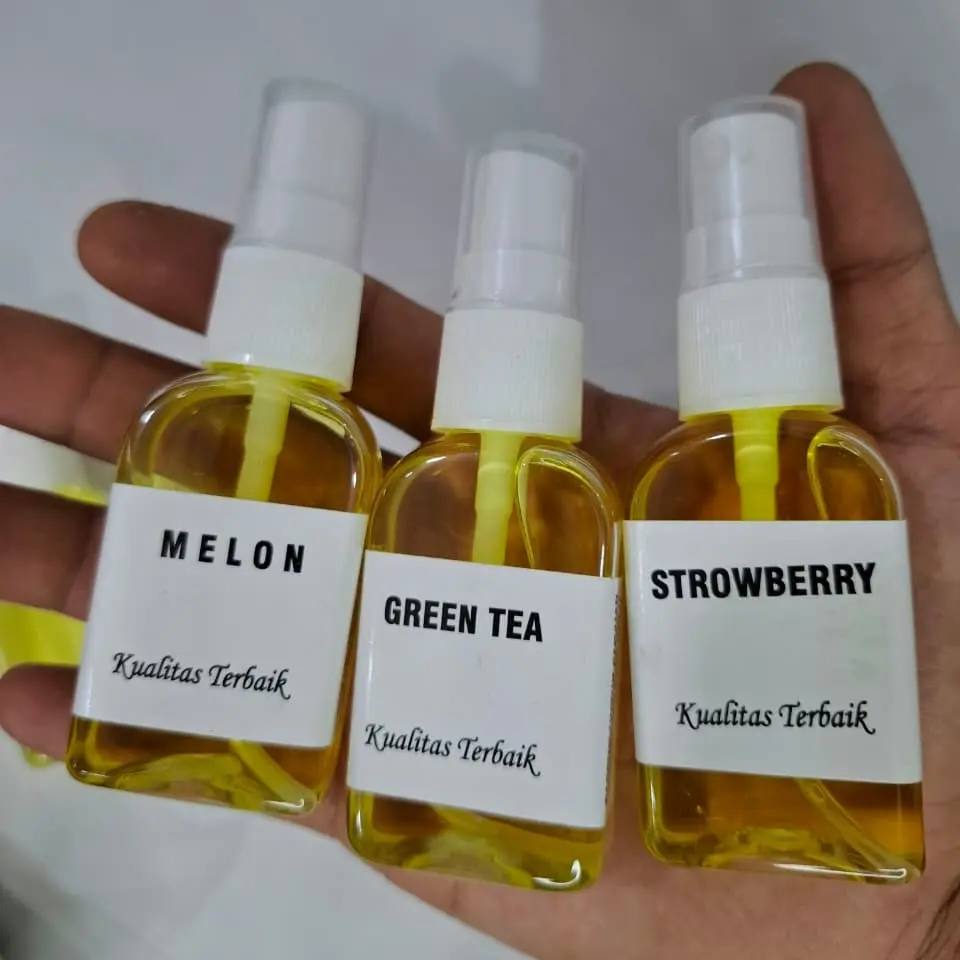 - dengan paduan bibit parfum berkualitas dan pelarut khusus, menjadikan wangi tambah menyebar dan tahan lama