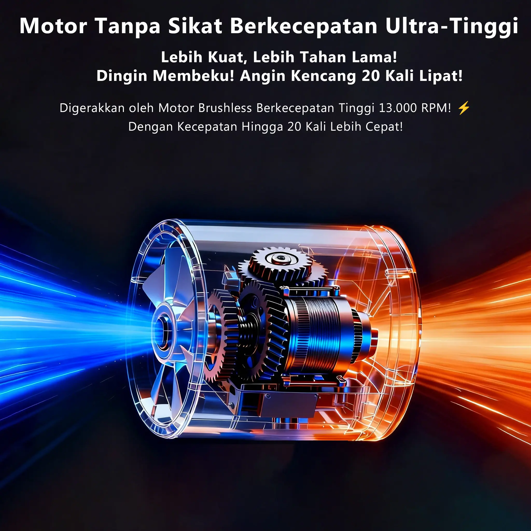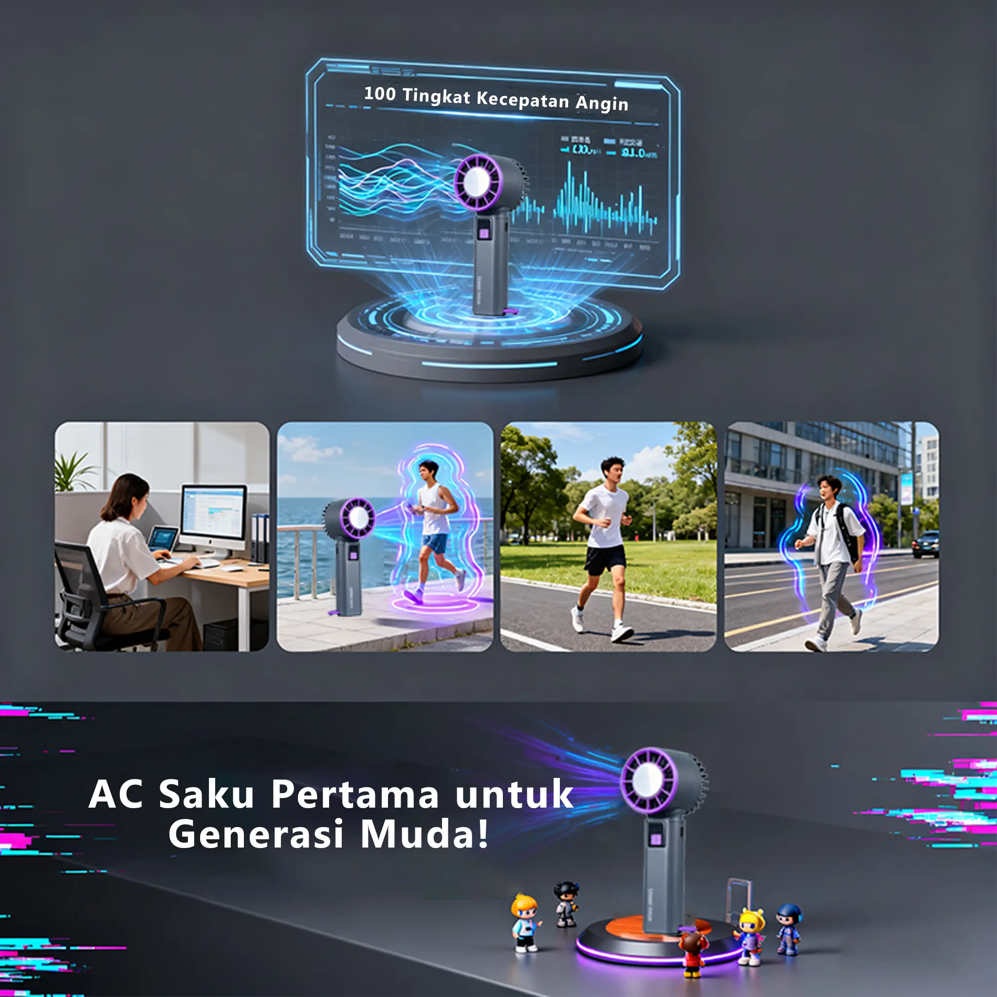 Memberikan hembusan angin sejuk untuk mendinginkan Andadengan cepat,sistem pembuangan panas yang cepat