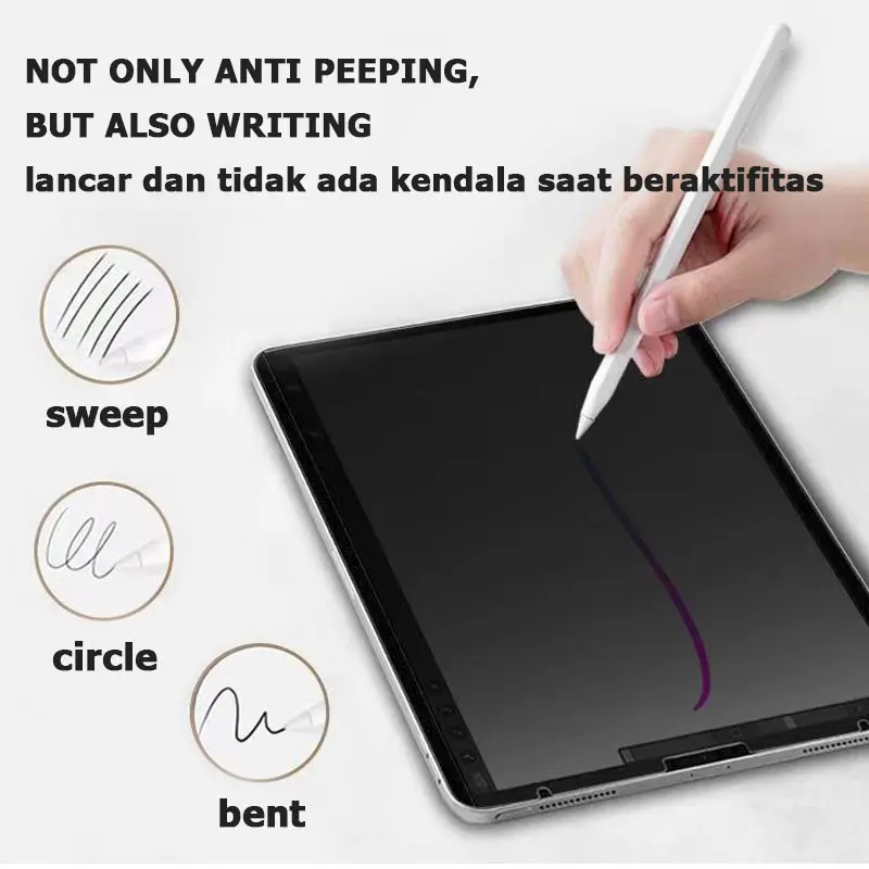 3. Pelindung layar privasi yang dirancang khusus untuk Tablet dengan teknologi anti-mata-mata 180 derajat secara efektif melindungi privasi pengguna. [Catatan: Hanya Layar horizontal anti-intip]