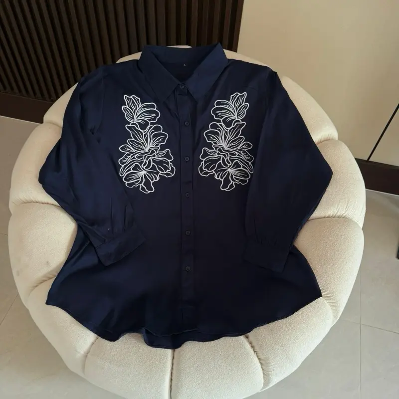 Bahan atasan ini adalah rayon twill yang pastinya nyaman saat di gunakan dan menyerap keringat.