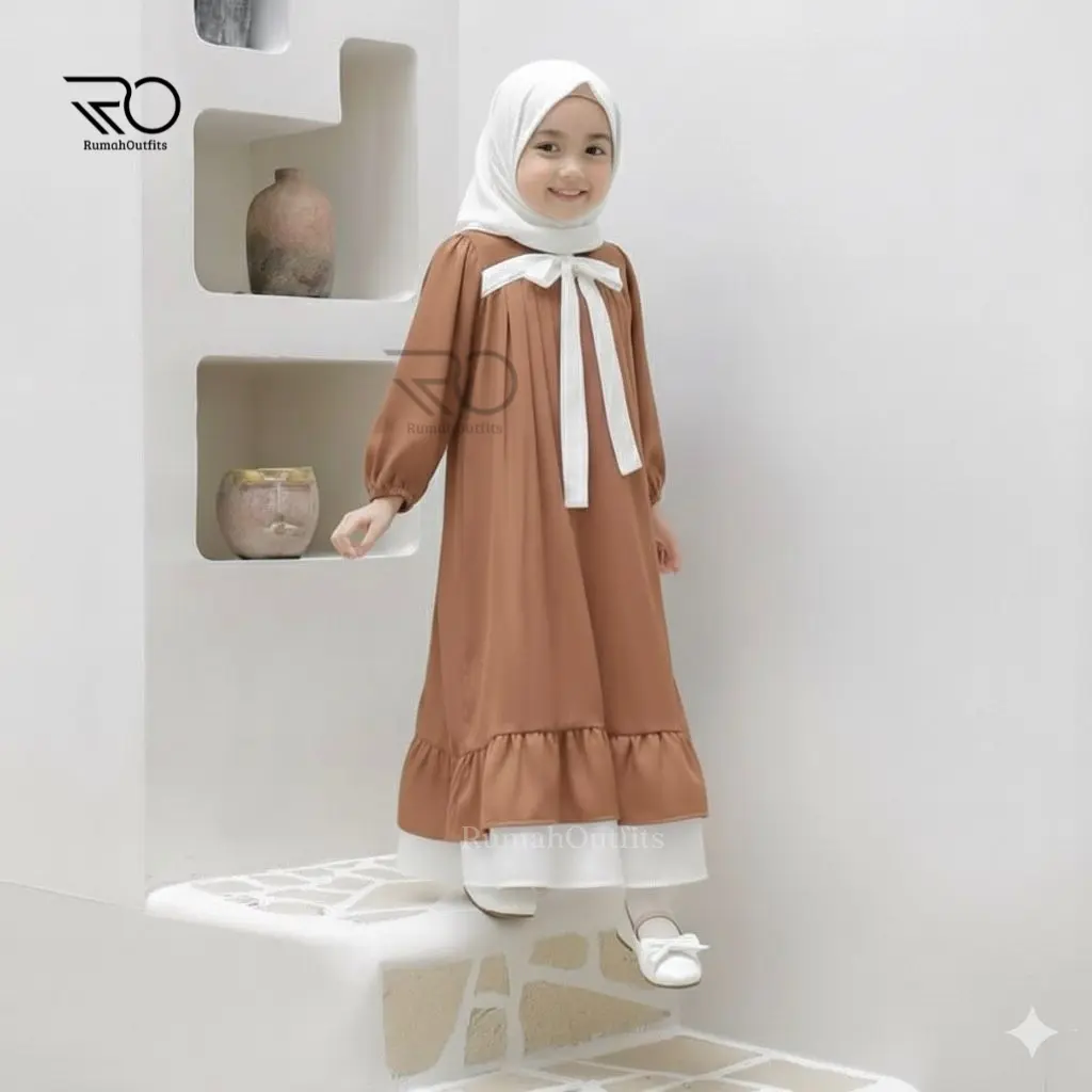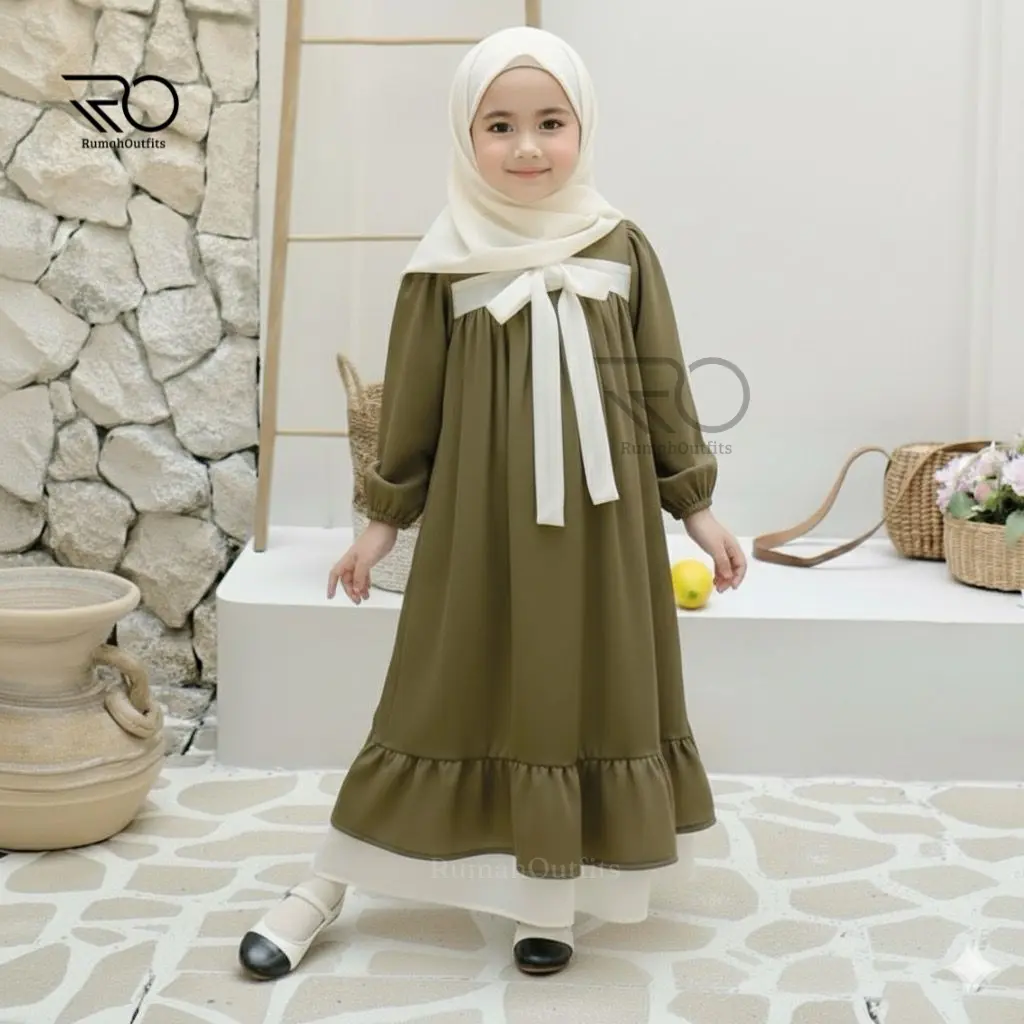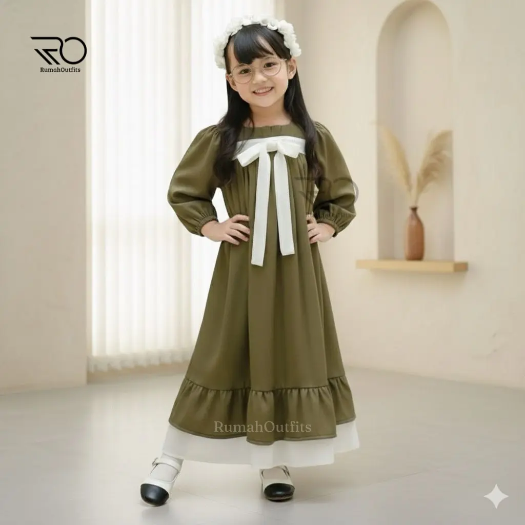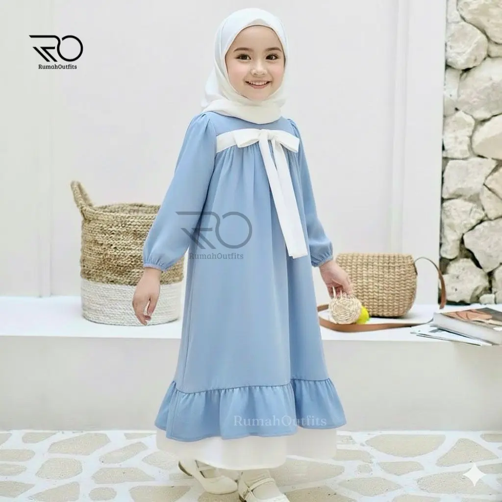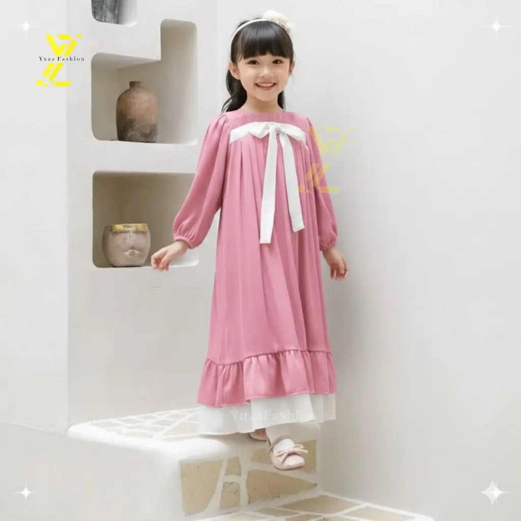 Baju Dress Anak Perempuan Jersey model Trendy dan Stylish, dilengkapi dengan Pita Cantik Lucu