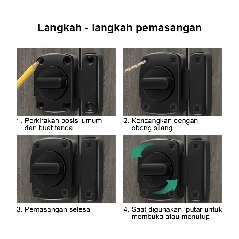 - Tipe: Sliding Bolt Putar Kiri-Kanan.