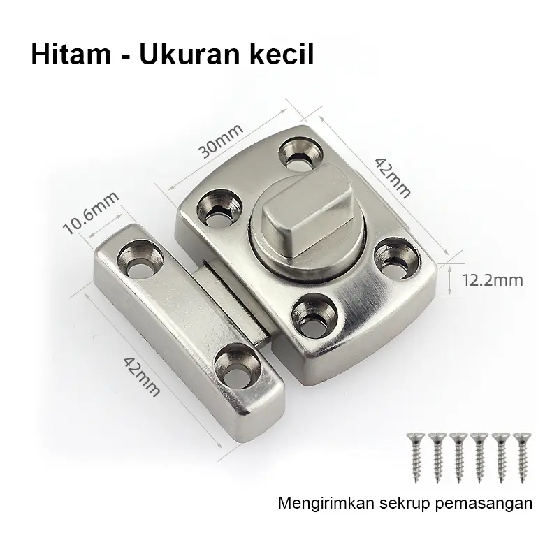 - 1 set Sliding Bolt Zinc Alloy termasuk sekrup pemasangan.