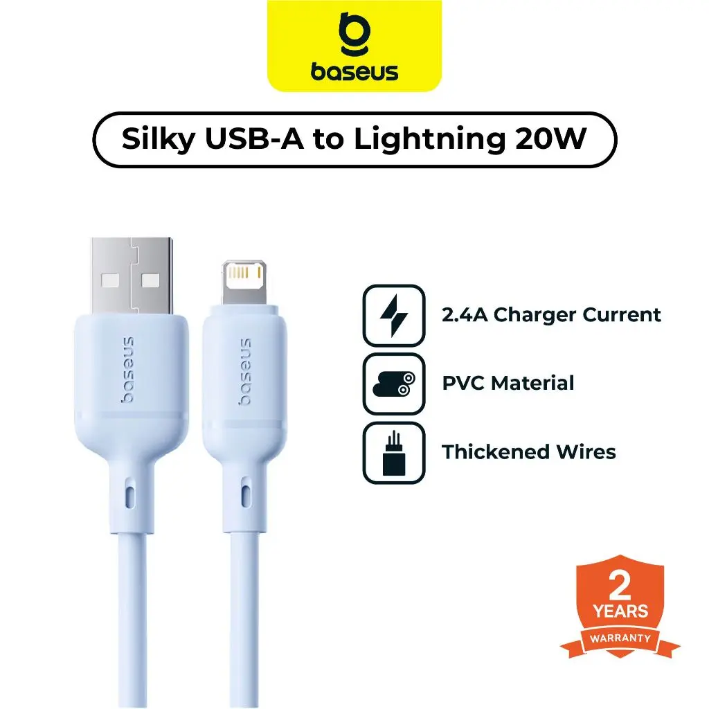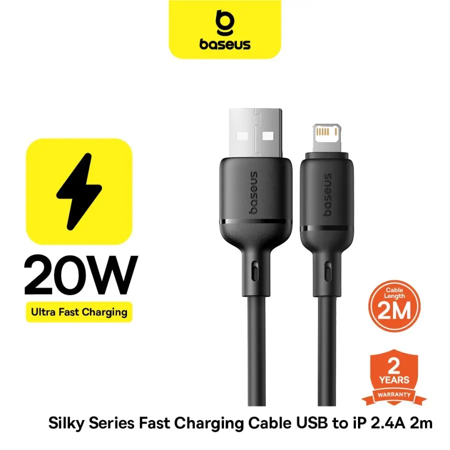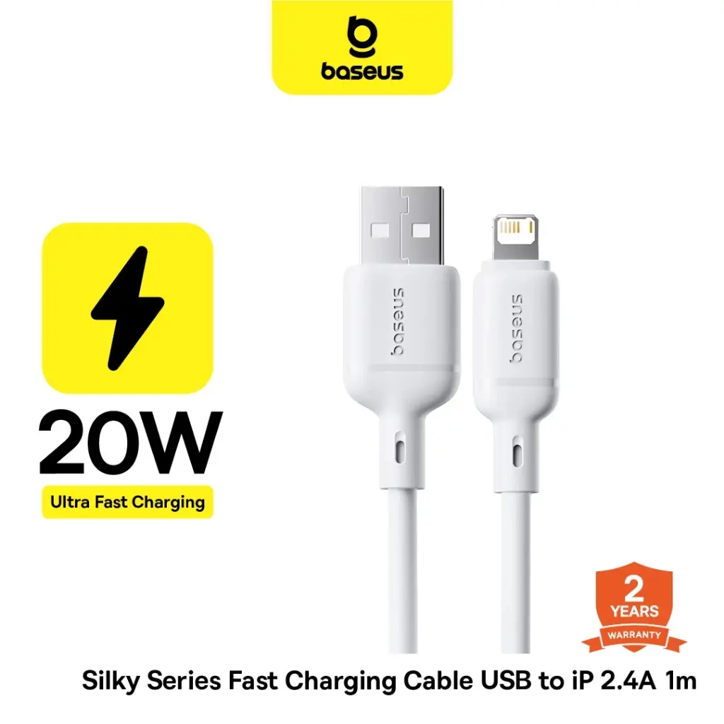* Kabel USB iPhone Baseus Silki dengan kecepatan 20W. Cocok untuk pengguna yang membutuhkan pengisian cepat.