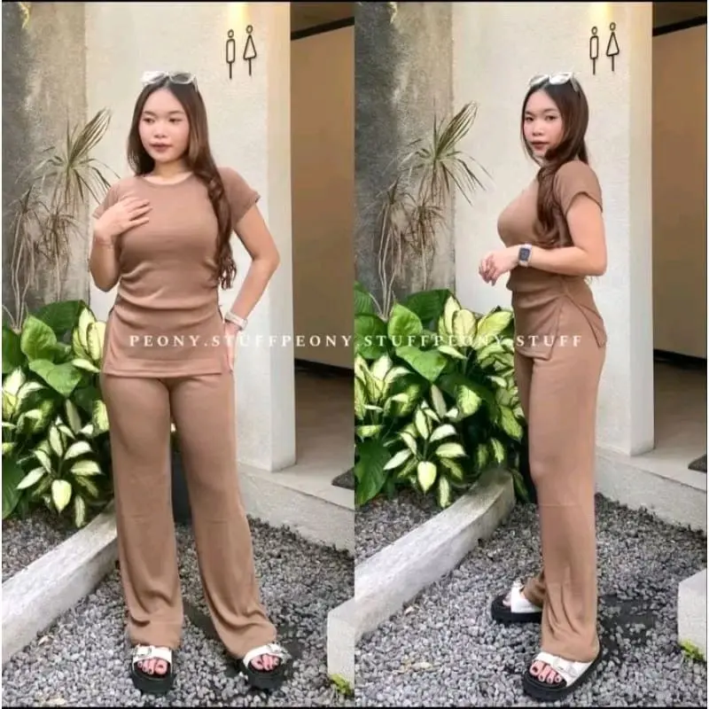 5. One Set Knit Penelope Rib Wanita Kekinian Staylist/ Setelan Santai Ootd Celana Kulot Panjang Top