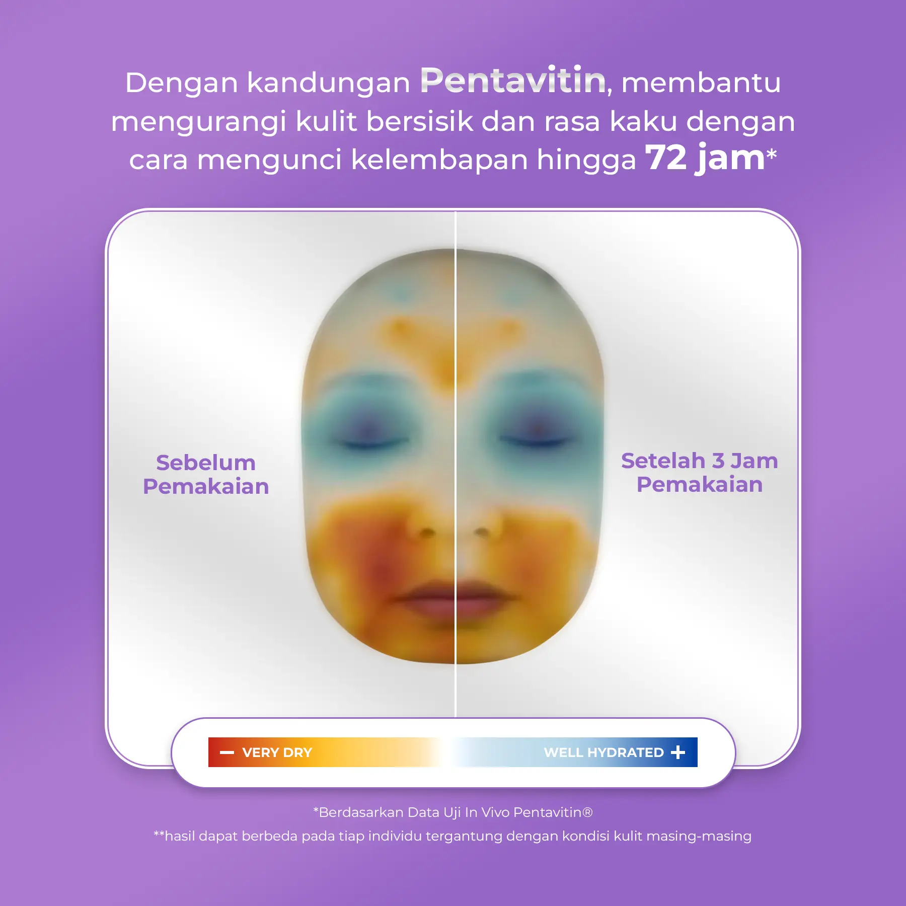 - Pentavitin : Membantu kunci kelembapan pada kulit hingga 72 jam*.