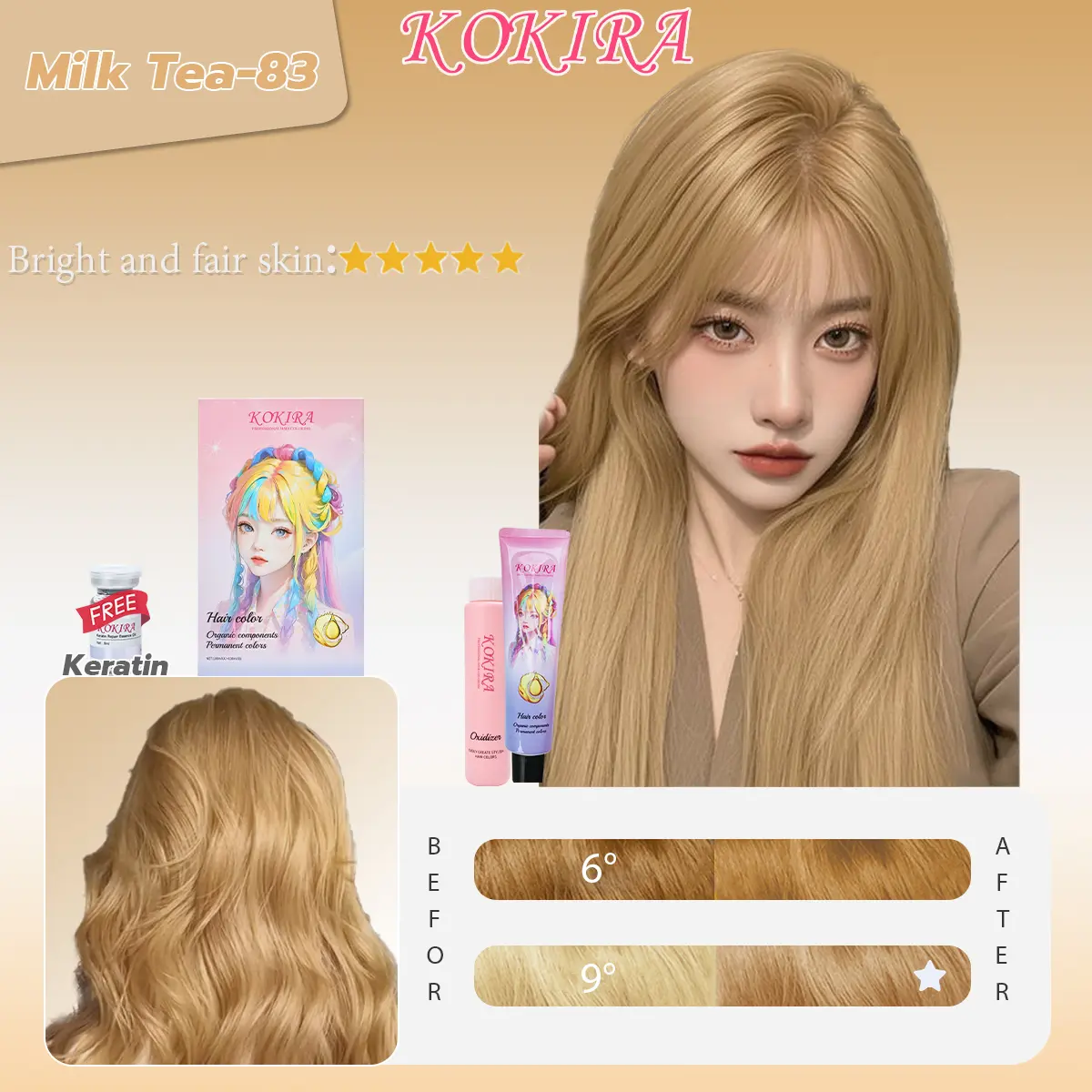 Kokira hair color Milk Tea-83+Hair care essential oil cat rambut pewarna rambut warna rambut tanpa bleaching semir rambut penutup uban cooper brown color