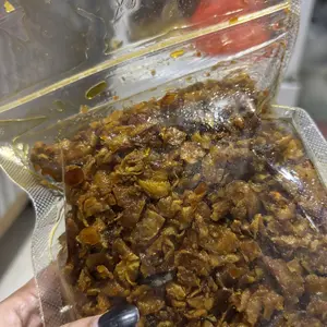Rasa lumayan pedas, bungkusnya gak dikasih kantong plastik tapi langsung di masukan wadah plastik minyaknya kemana2, saran saya di bungkus plastik vacuum lagi di masukan wadahnya.foto sudah saya bersihkan minyaknya
