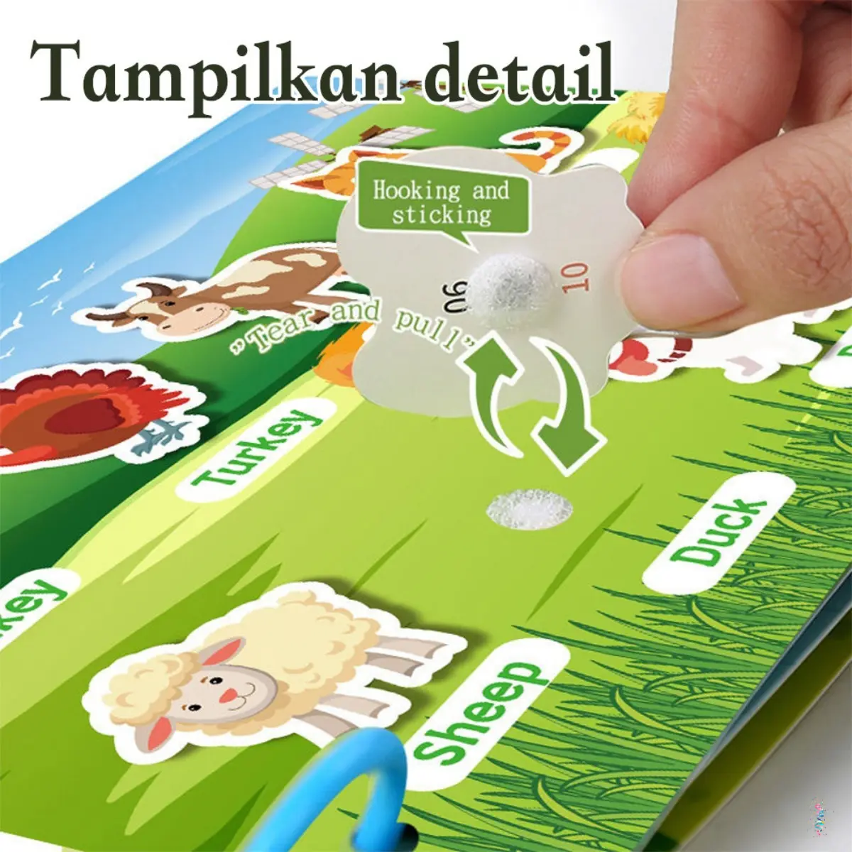 Bayi dapat menempelkan dan melepas kartu jawaban secara langsung yang berguna untuk mengembangkan keterampilan motorik halus mereka.