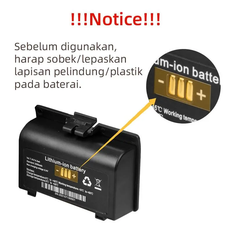Sebelum penggunaan pertama kali, harap lepas baterai dan sobek lapisan pelindung di atasnya agar dapat diisi daya.