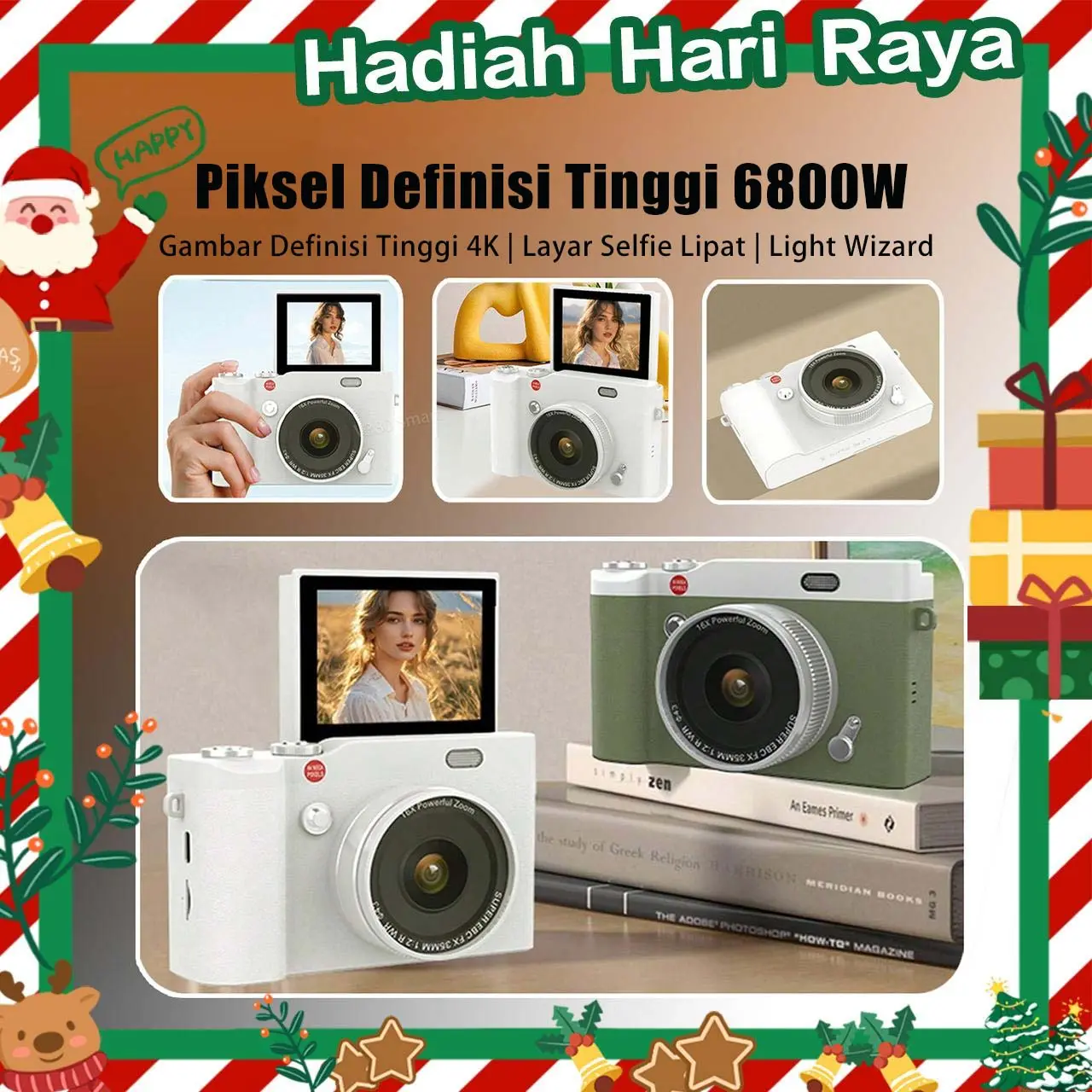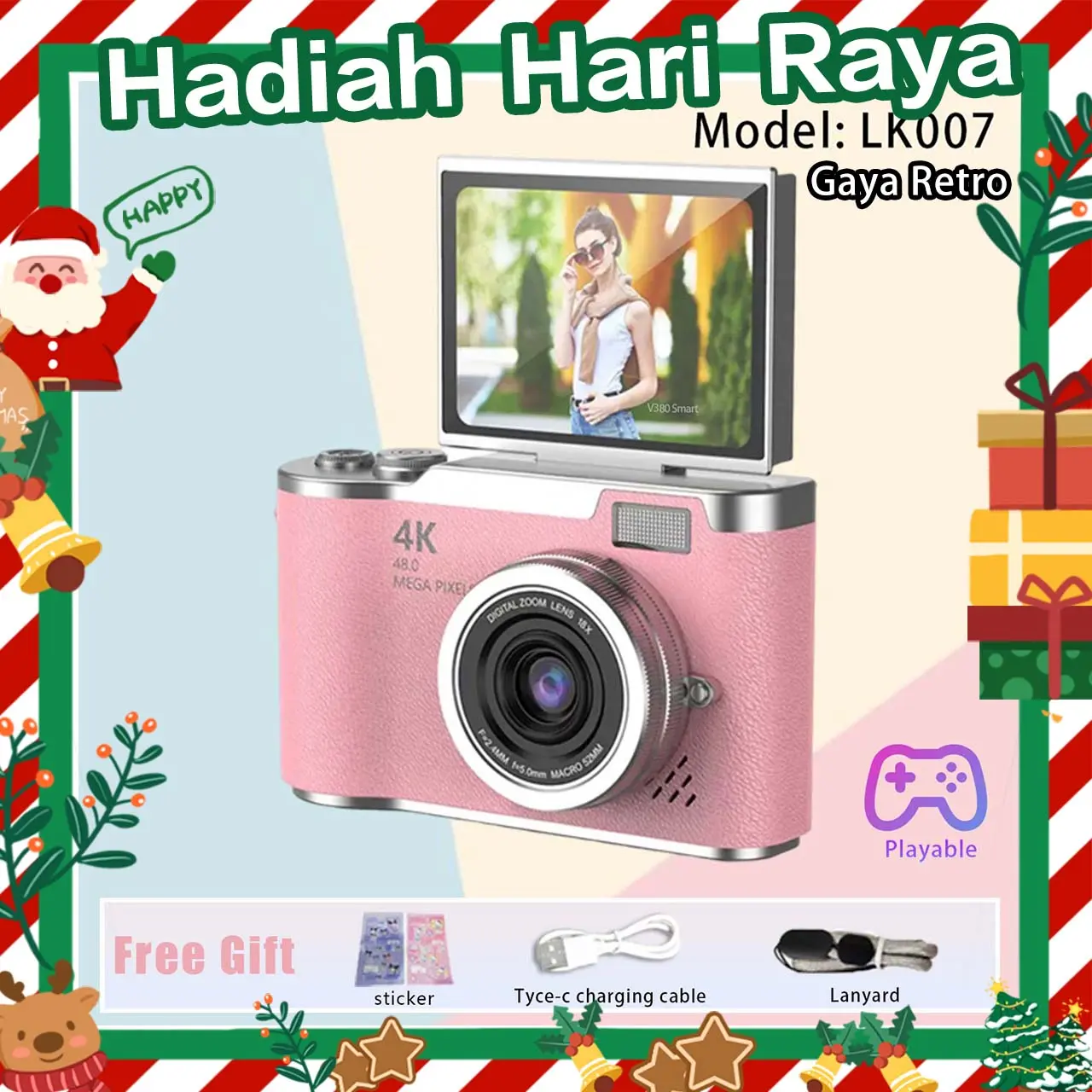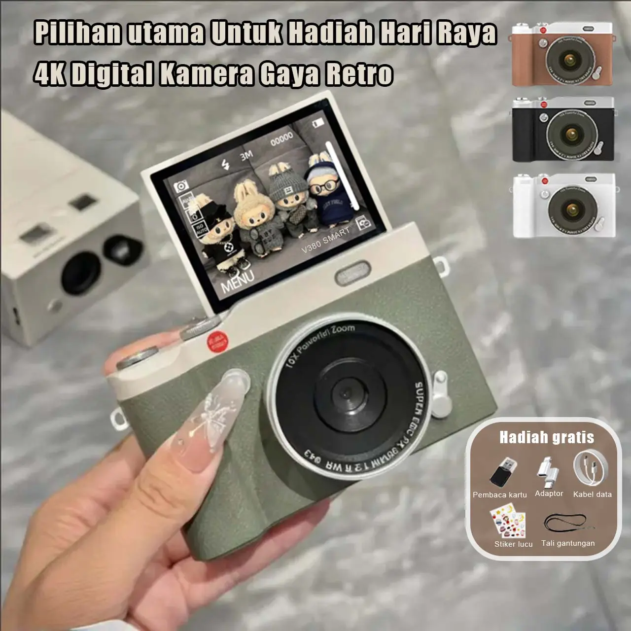 【Kado Hari Raya Kekinian】4K Digital Kamera Gaya Retro 68MP Portable CCD Retro Kamera Digital Vintage 2.4 inch 8X Zoom Compact Small Camera 180 Flip Screen Video Camcorder for Teens Adult Beginner【Gift stickers】Hadiah Lebaran Layar Foto V380 Smart