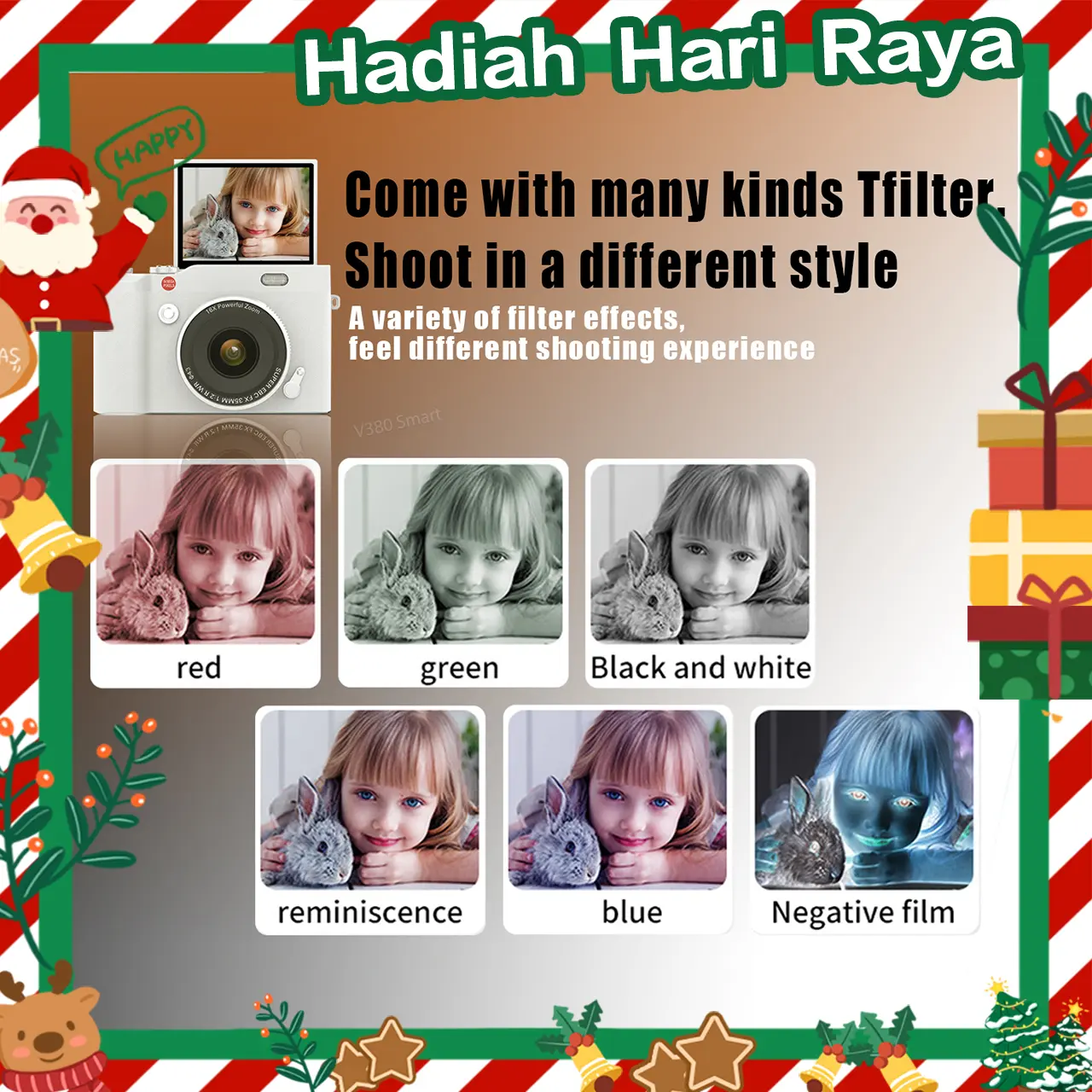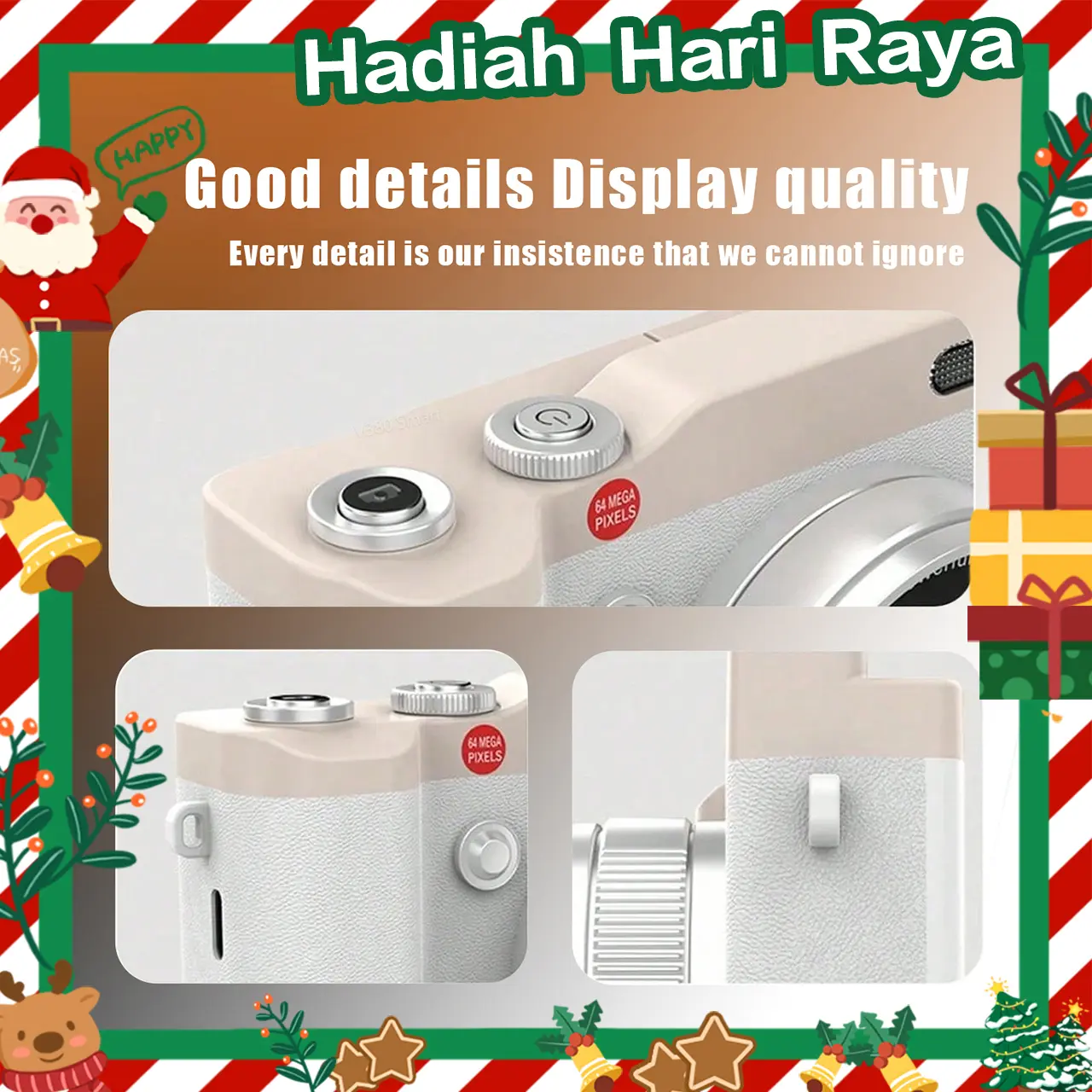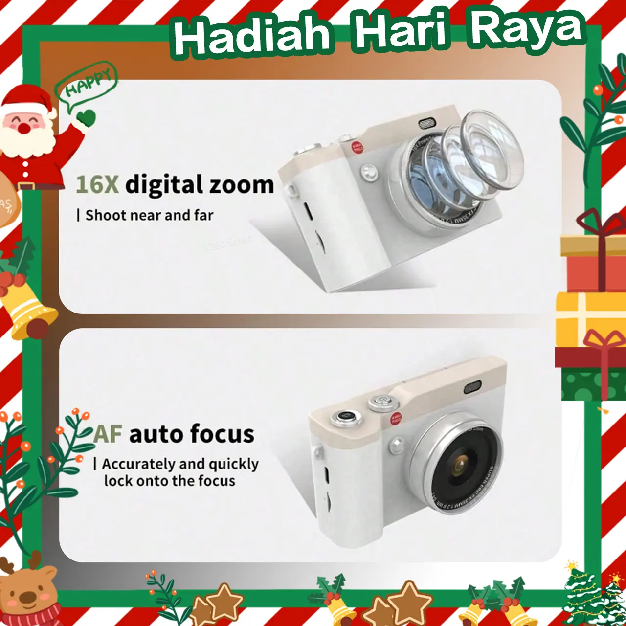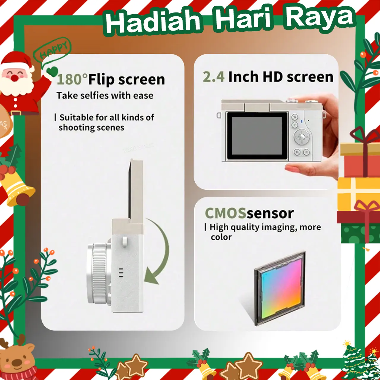 【Kado Hari Raya Kekinian】4K Digital Kamera Gaya Retro 68MP Portable CCD Retro Kamera Digital Vintage 2.4 inch 8X Zoom Compact Small Camera 180 Flip Screen Video Camcorder for Teens Adult Beginner【Gift stickers】Hadiah Lebaran Layar Foto V380 Smart