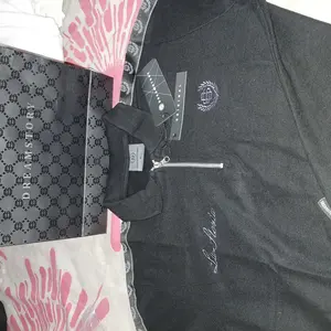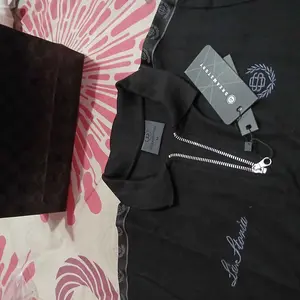 bahan halus, jahitan rapi, warna hitam pekat, sablonnya tebel, ukuran pas, dapet paperbag juga. cocok dijadiin kado pacarr🥰