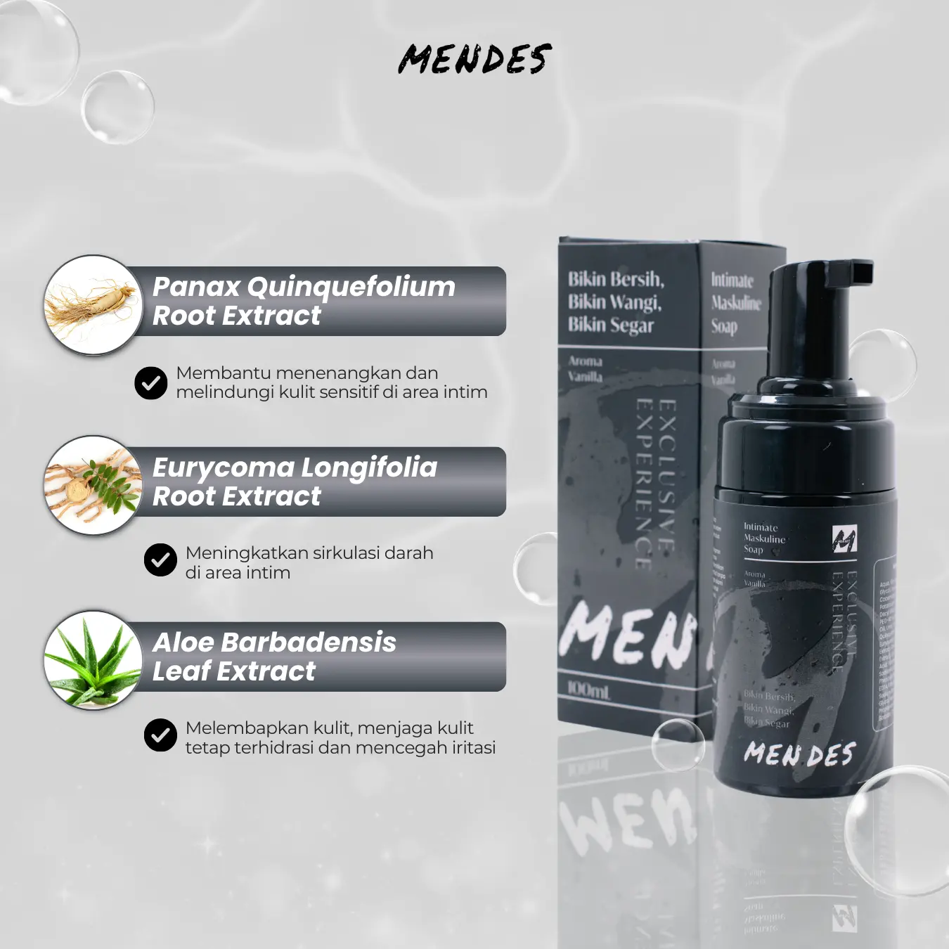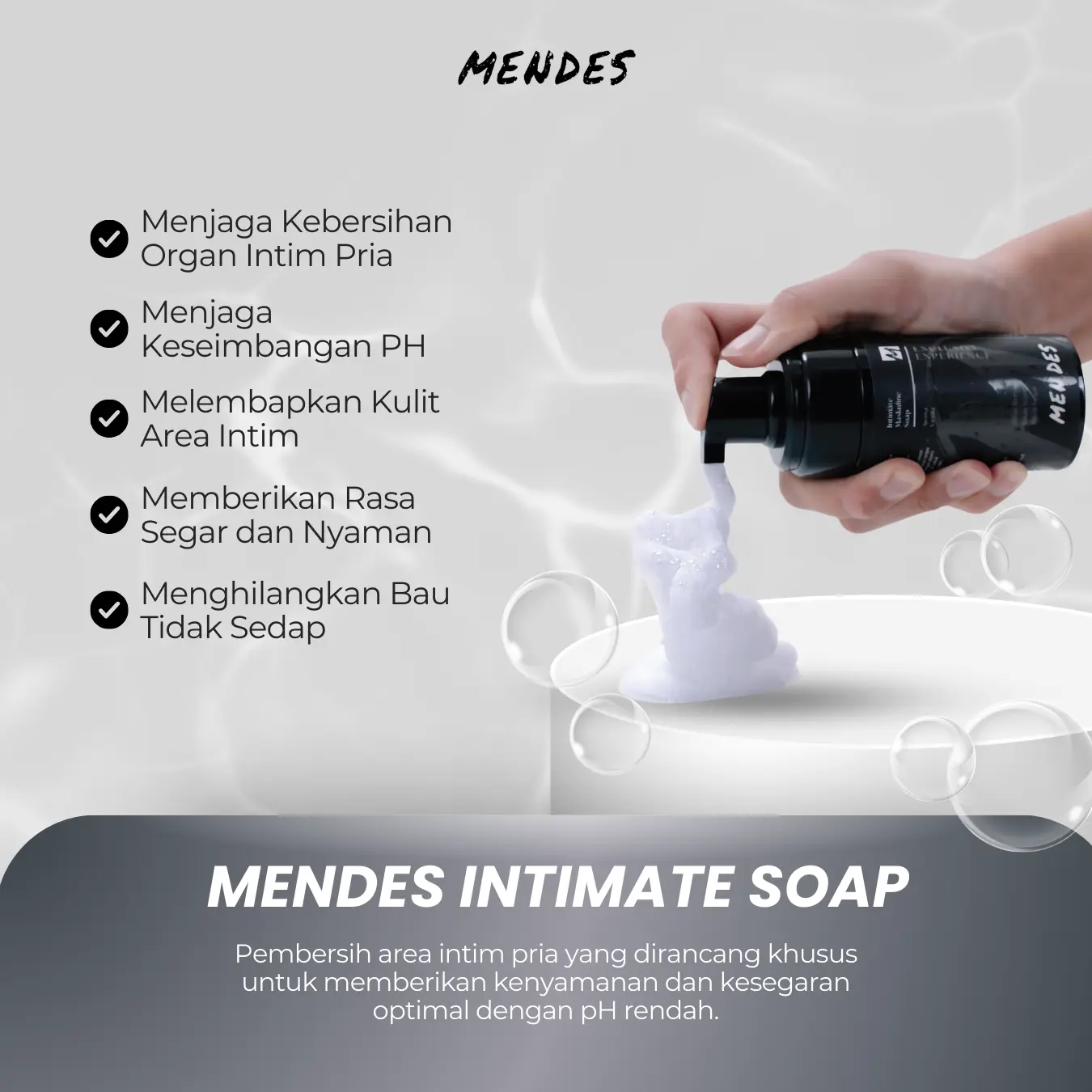 Mendes Intimate Soap untuk pria, diformulasikan khusus untuk menjaga kebersihan dan kesehatan area intim. Dengan formula lembut dan pH seimbang, sabun ini efektif membersihkan kotoran dan bakteri tanpa menyebabkan iritasi.