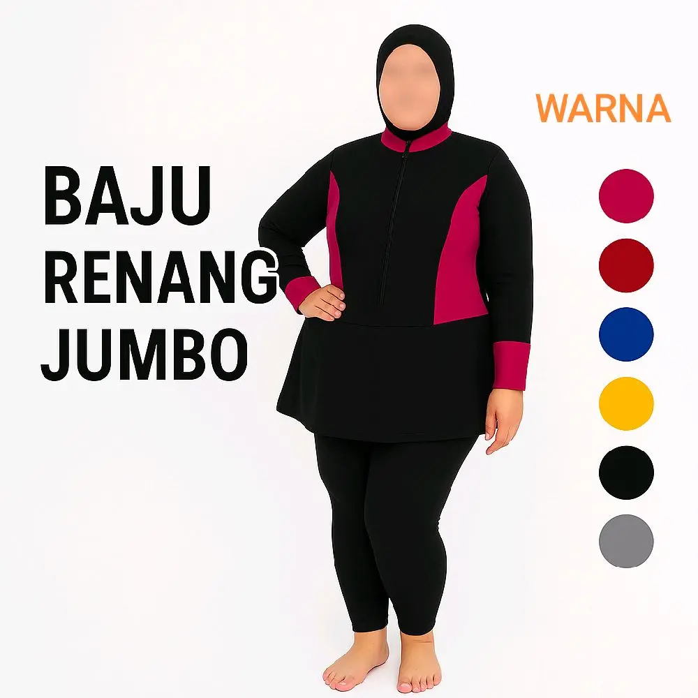 ✨ Baju renang muslim cewek jumbo terdiri dari atasan dan bawahan. Bahan polyester melar dan halus, memberikan kenyamanan maksimal. Model atasan dilengkapi resleting, memudahkan penggunaan. Ukuran jumbo cocok untuk Anda yang mencari baju renang yang nyaman dan pas.