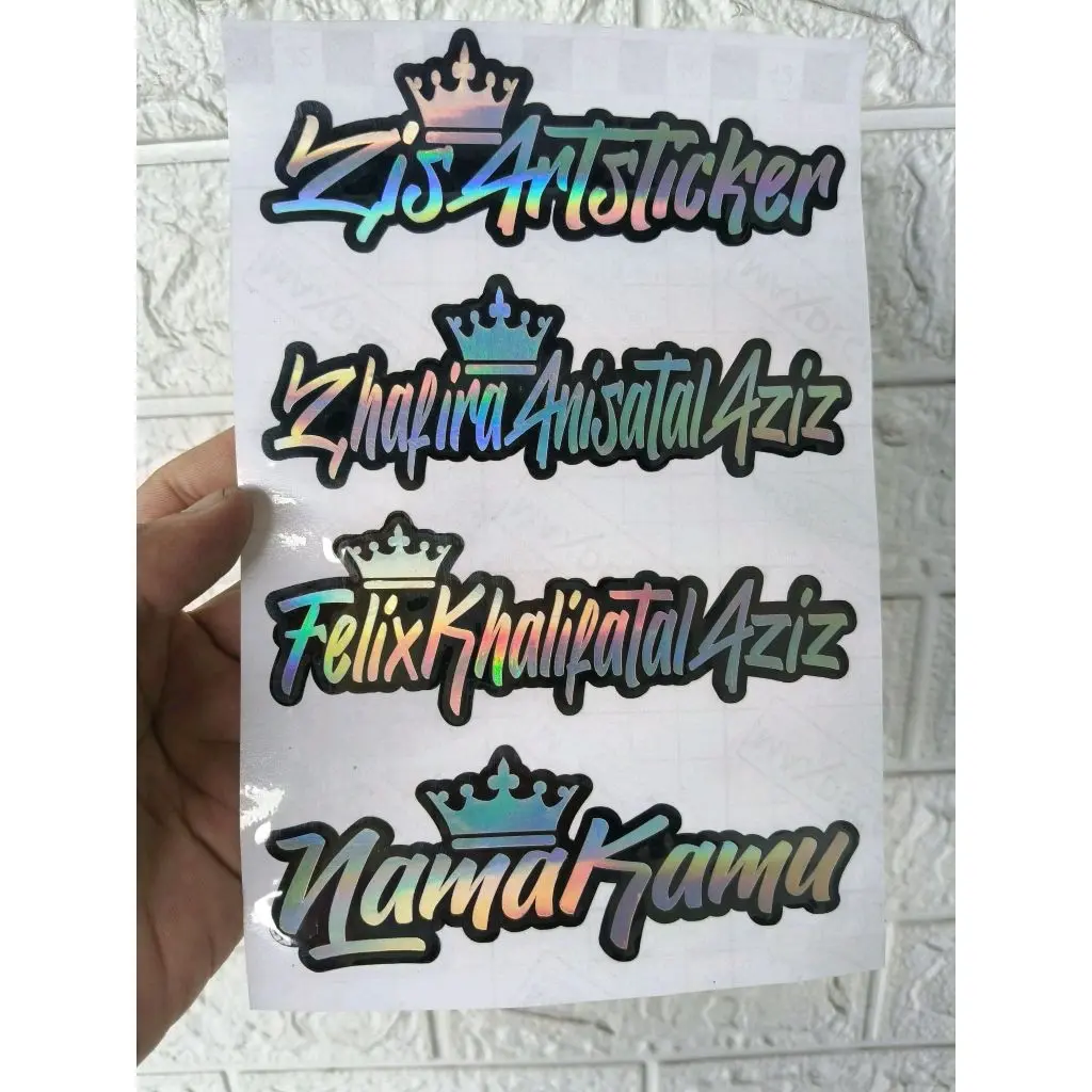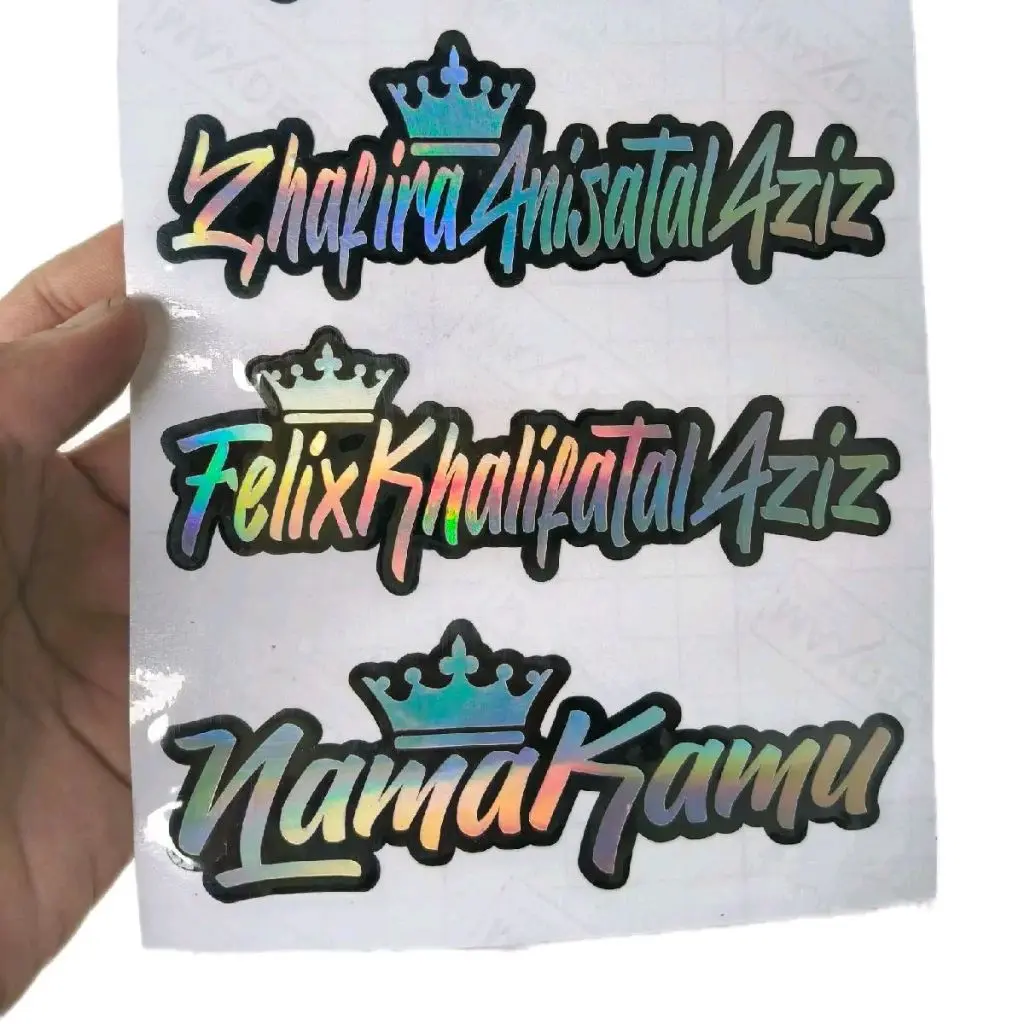 STIKER NAMA CUSTOM NAMA REQUEST HOLOGRAM NAMA MAHKOTA