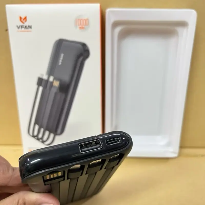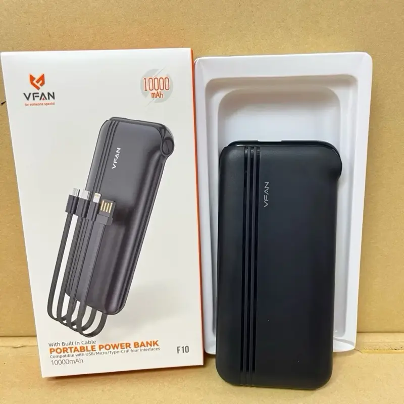 ⚡ Power Bank Portabel VFAN 10.000MAH F10 kompatibel dengan empat interface: USB, MICRO, Type-C, dan IP. Ideal untuk pengguna yang membutuhkan daya portabel yang fleksibel.