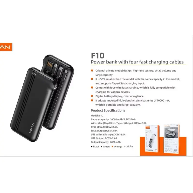 VFAN Portable Power Bank 10.000MAH F10