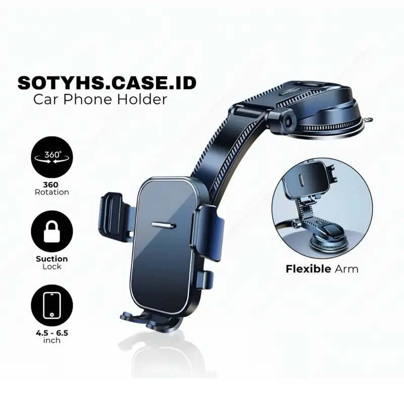 Holder hp mobil tipe A117 dengan fungsi penyedot kuat! Desain tautan menjepit hp kencang, bisa diputar 360 derajat, cocok untuk hp 4.5-6.5 inci. Ringan dan kuat, sangat membantu saat berkendara!